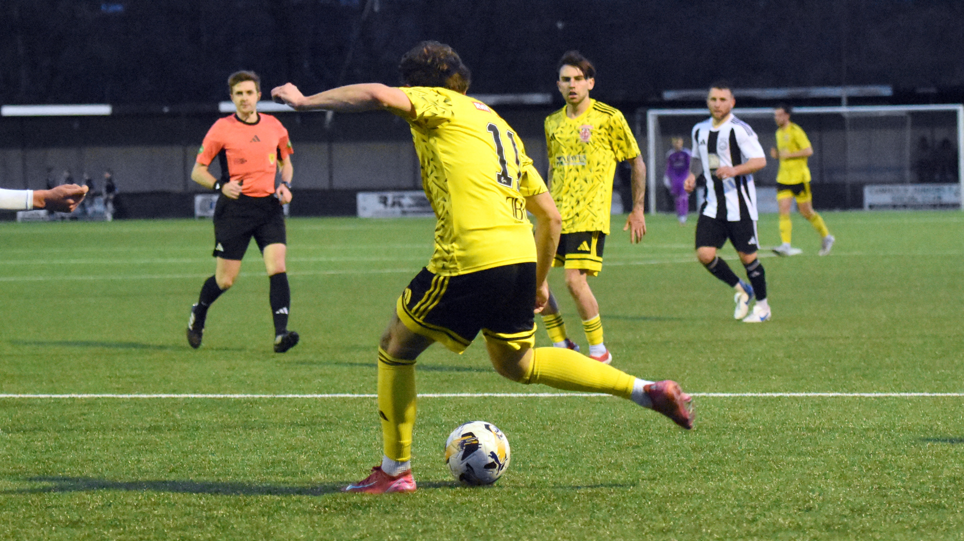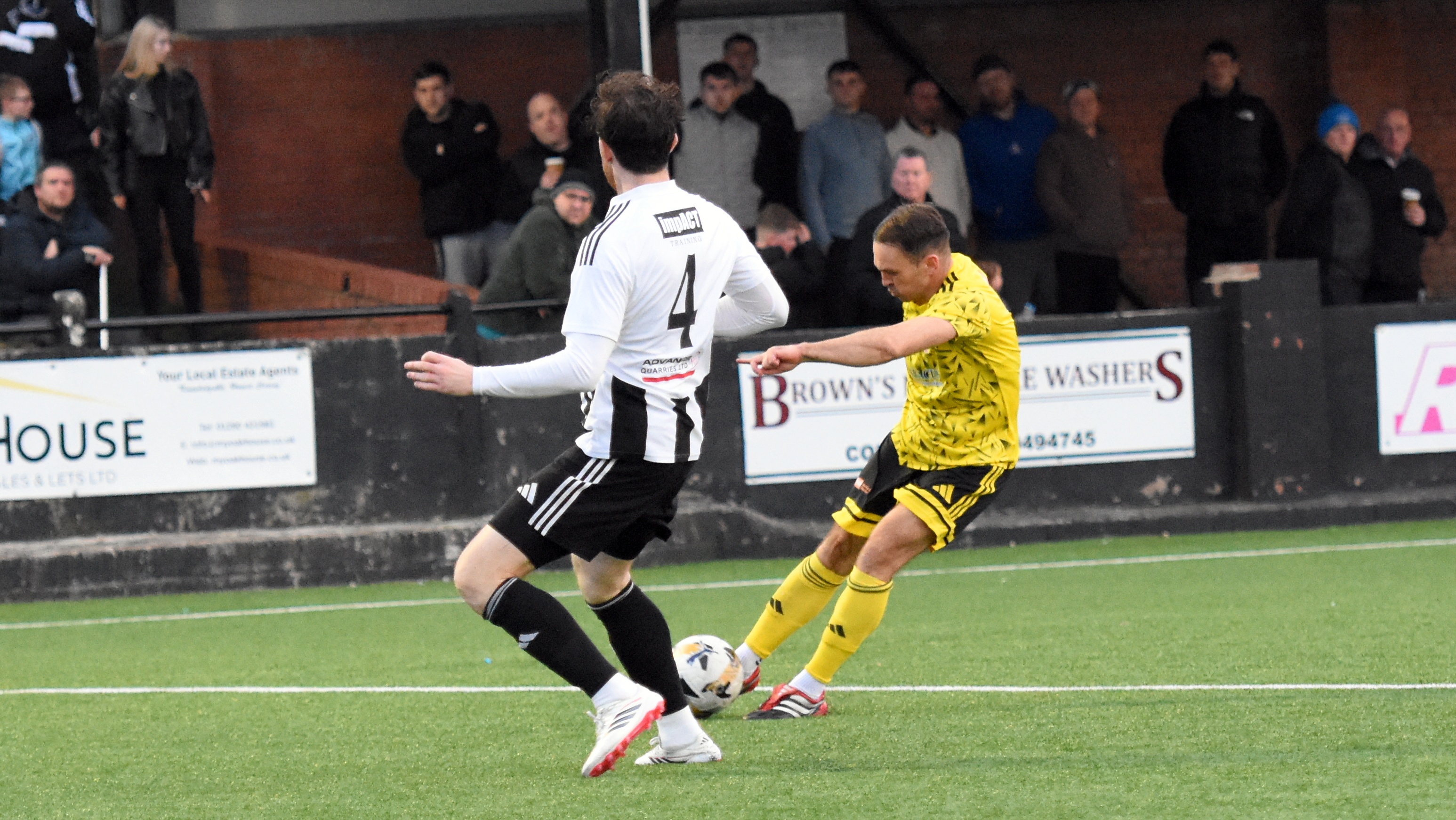 "The Nock" took the lead in the 18th minute. Luke Scullion played the ball out to the left hand side, but a misunderstanding in the Burgh defence and midfield led to Jamie Conn getting to the ball first before making a fine run, and then executing a crisp low pass into the box that found Thomas Orr, who took the ball around Scullion, before finding the back of the net 4 yards from goal.