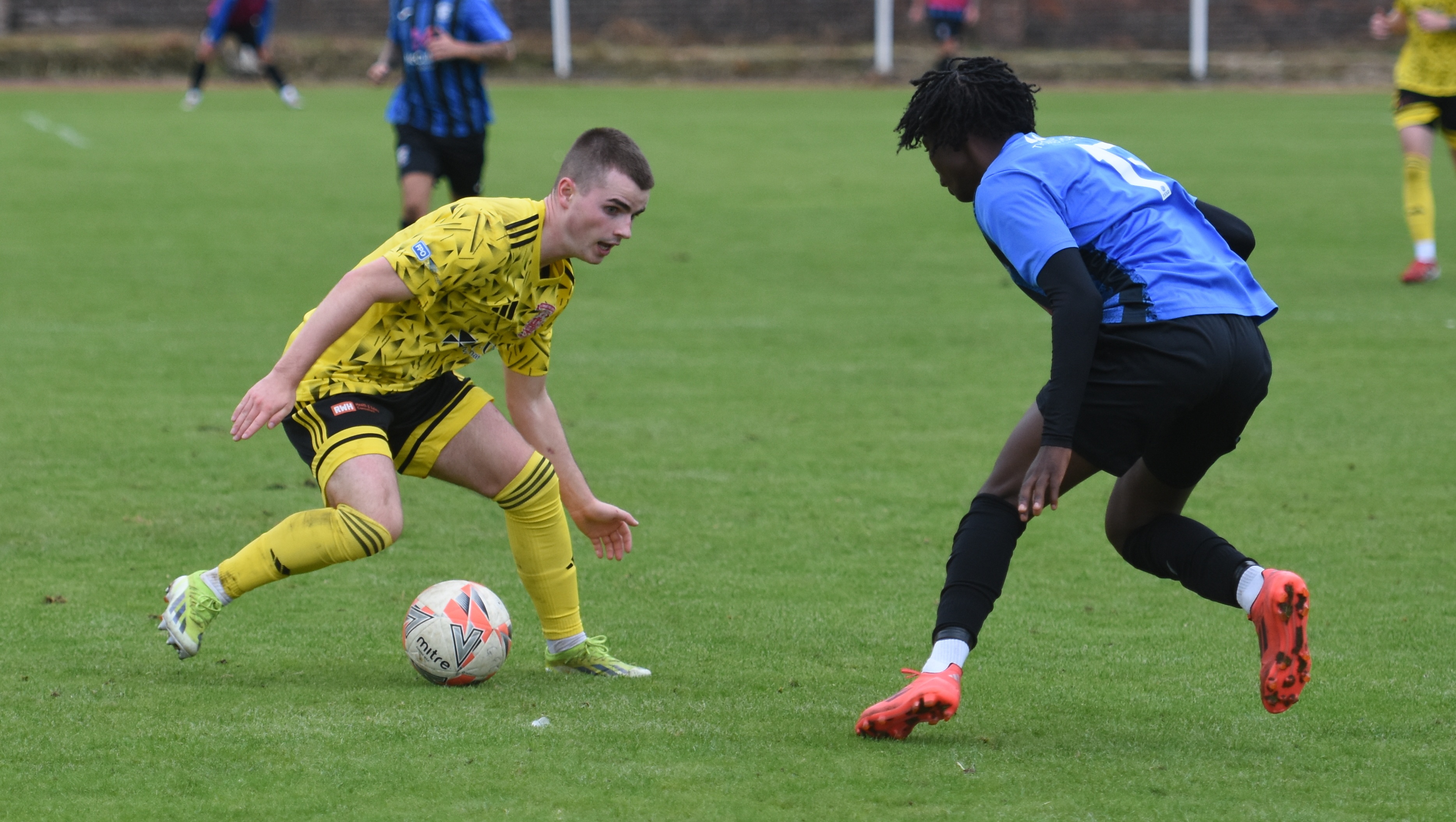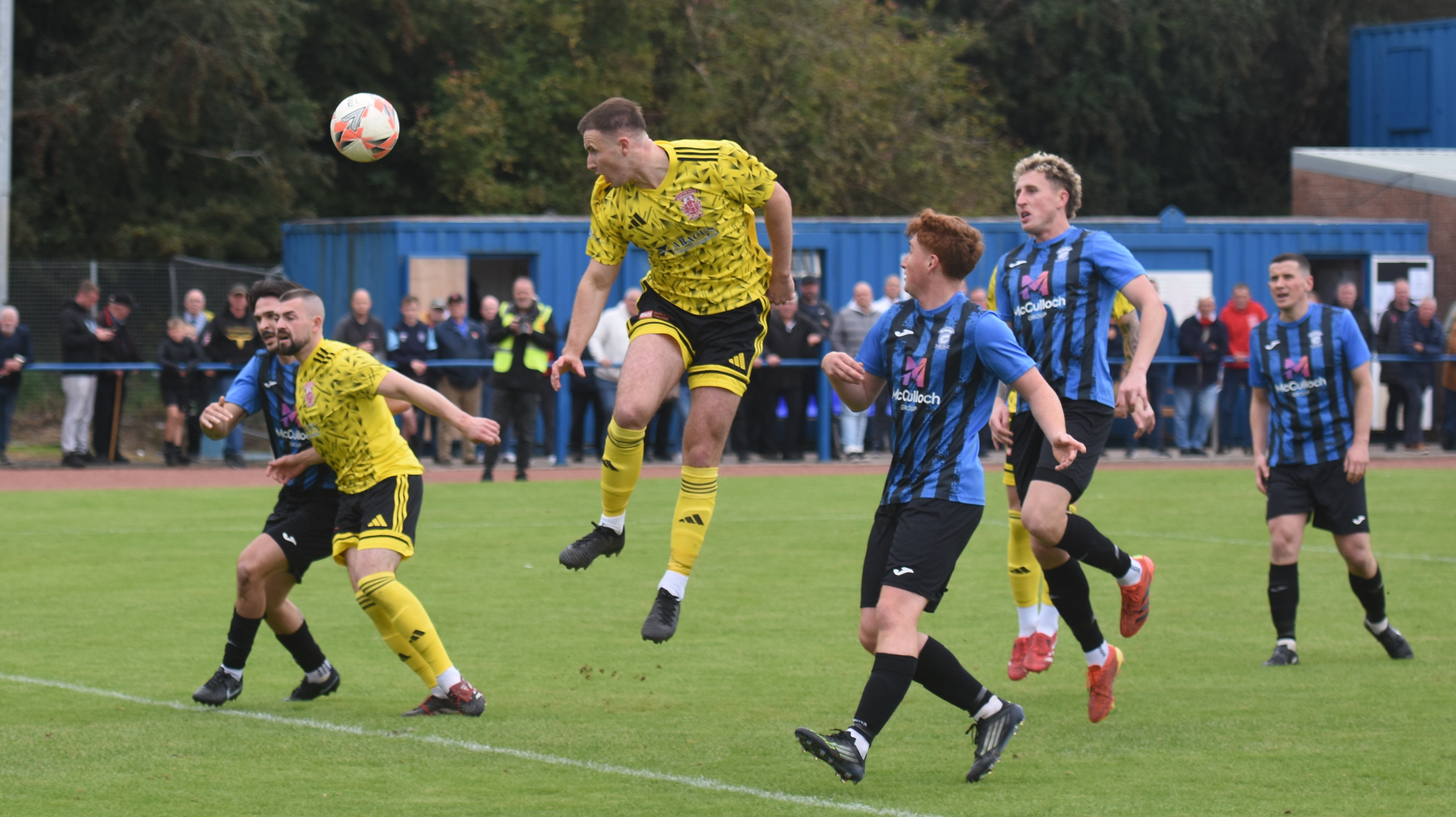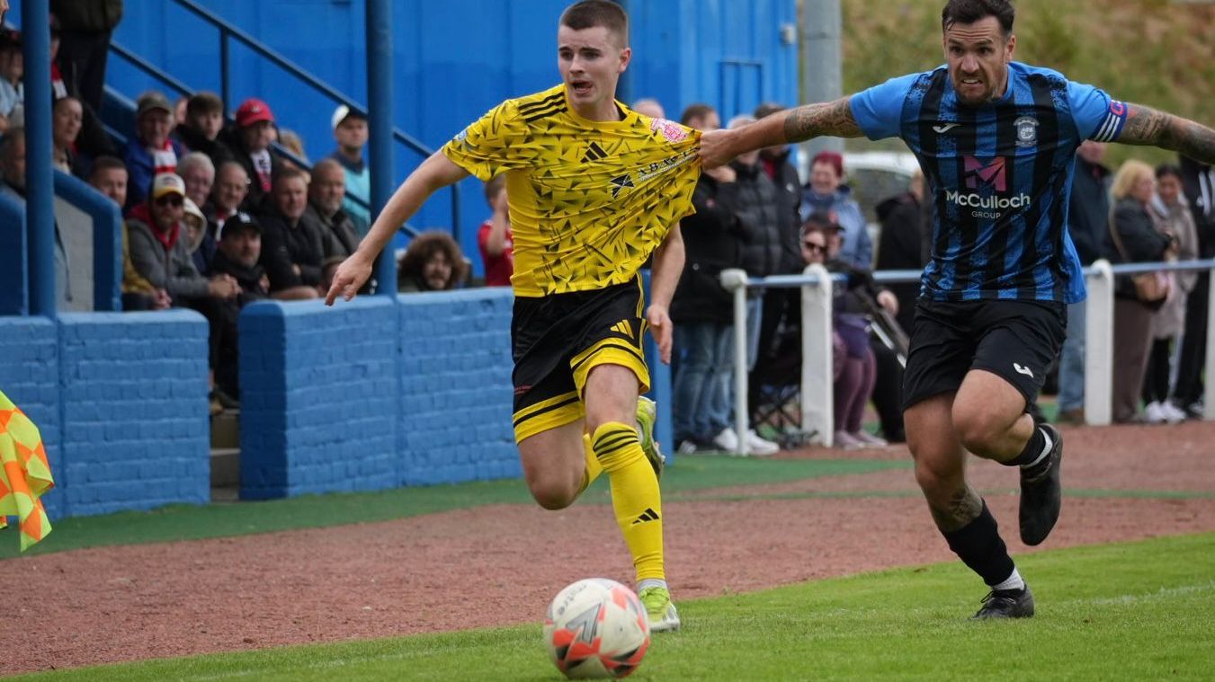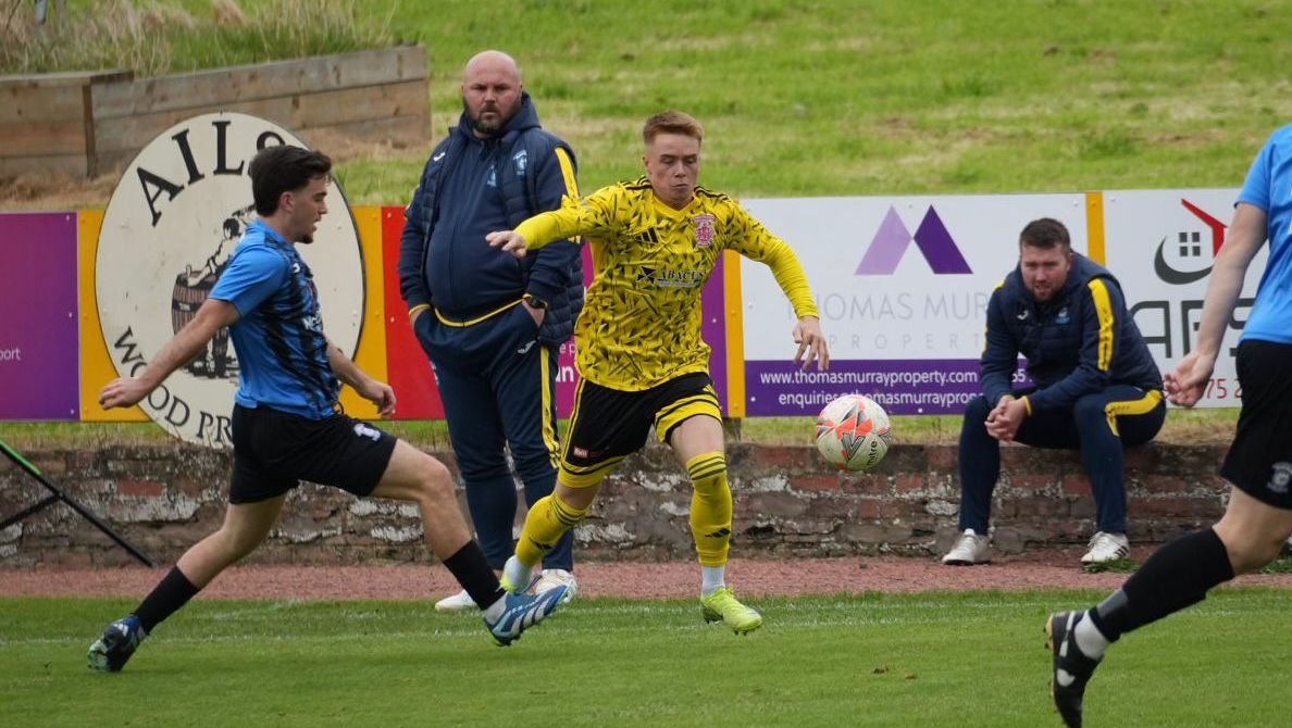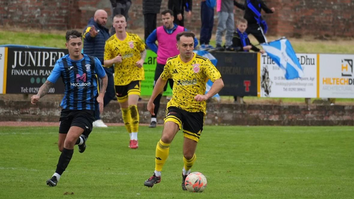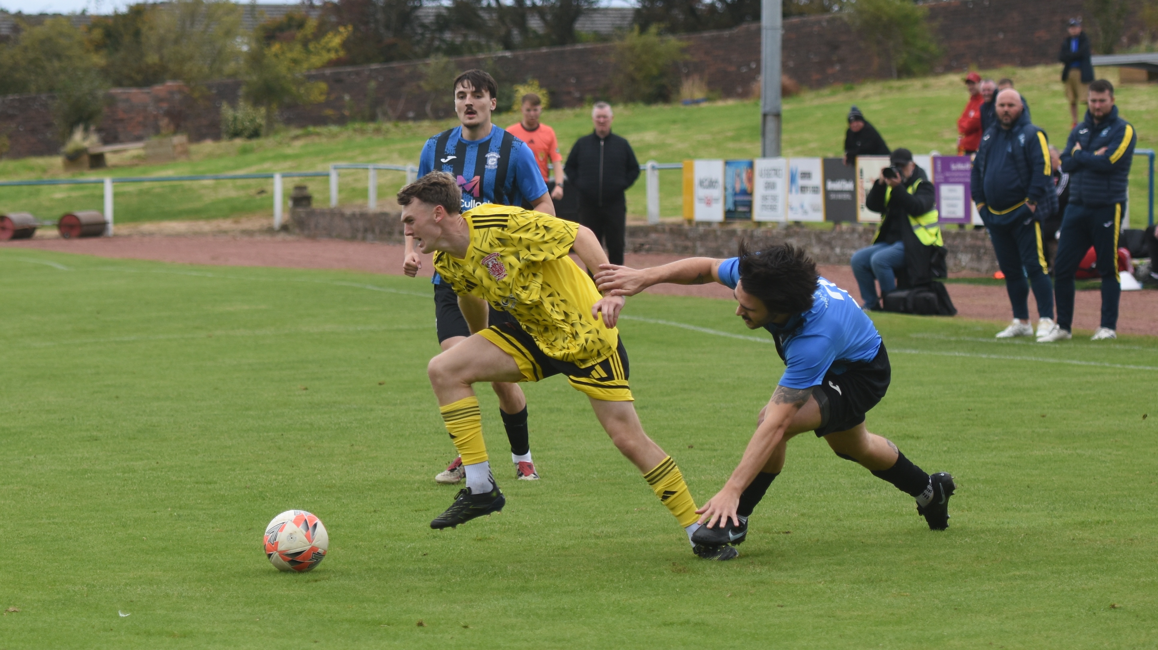 Five minutes before the break, Max Kerr collected a superb cross-field ball from Rossiter, played a one-two with Ian McShane then skipped between two defenders before unleashing a powerful strike from the edge of the box, which flew past Mullen into the net to put The Burgh ahead.