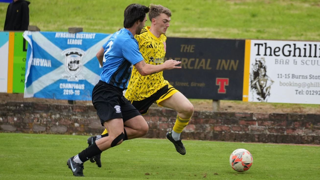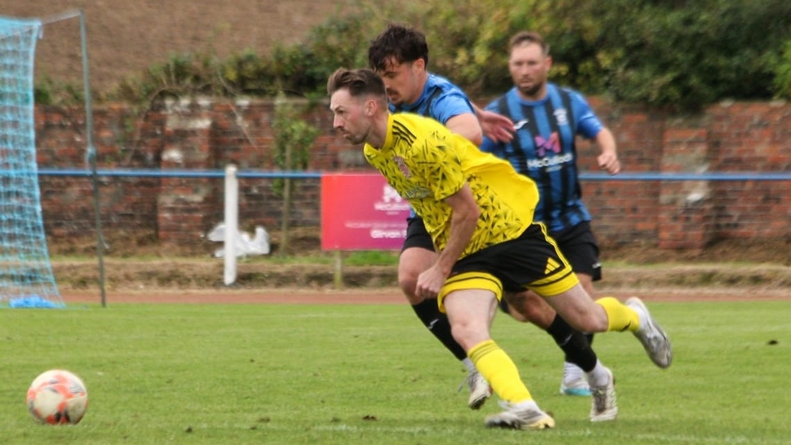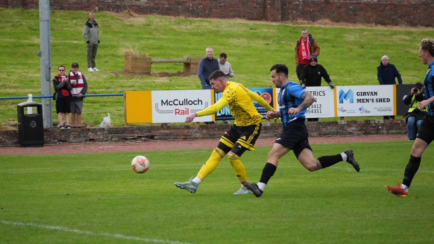 Following the early pressure, the hosts found their way into the match creating one or two chances for themselves without really threatening, whilst Mullen stung the palms of the Girvan keeper.