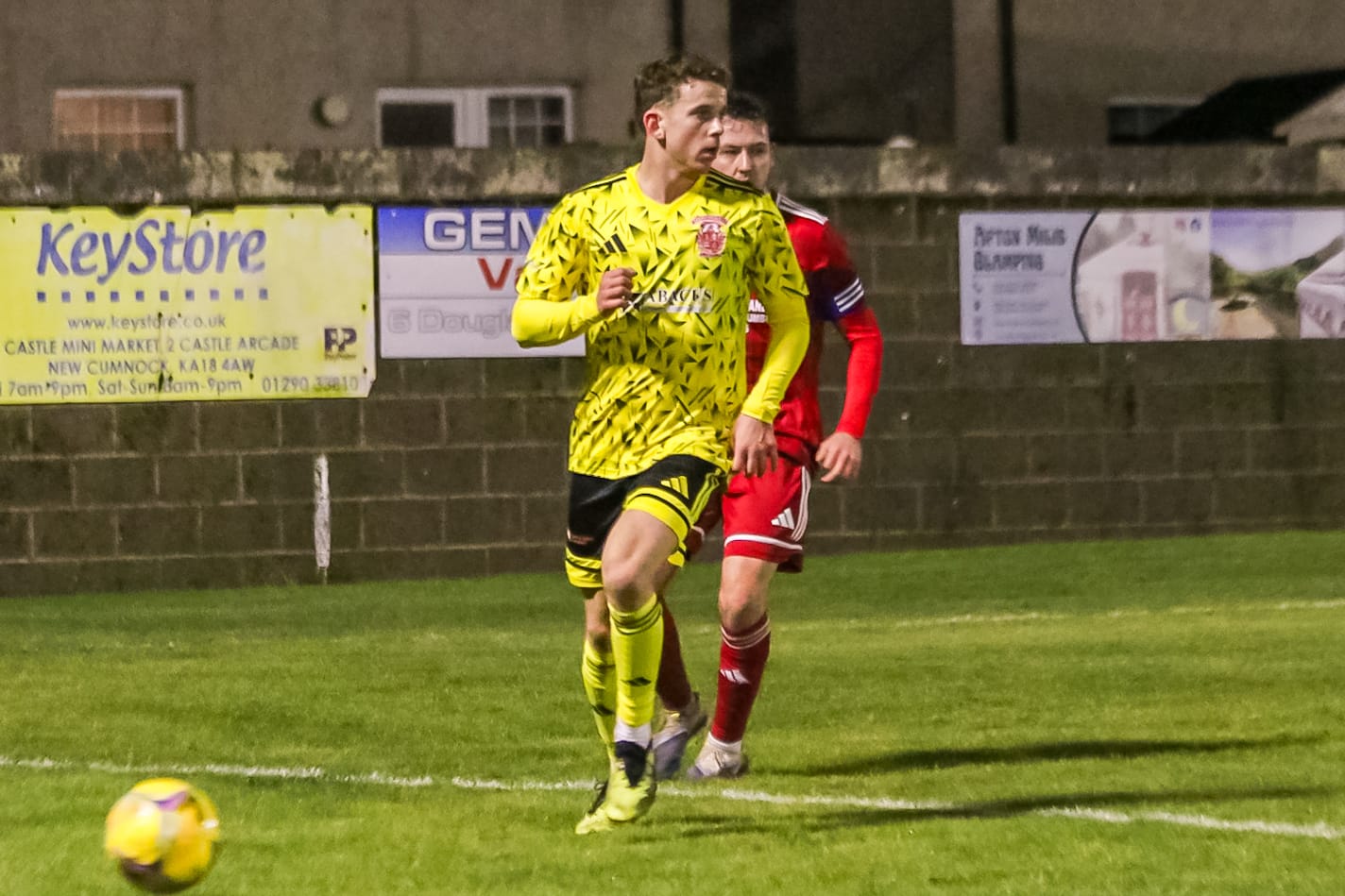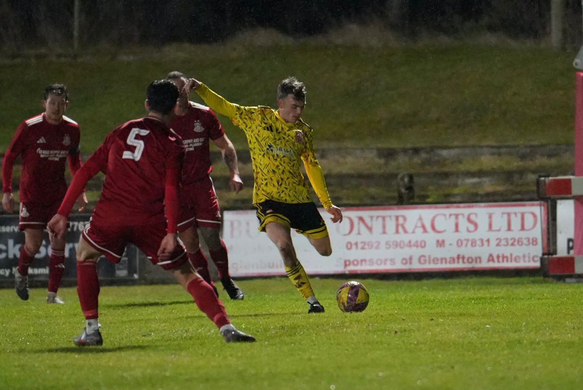 After a quiet opening to the game, the Burgh's Kian Gilday had the first attempt at goal of the evening as his well struck low shot from the edge of the box was well saved by Glenafton goalkeeper, Ollie Ecrepont, in the 9th minute.