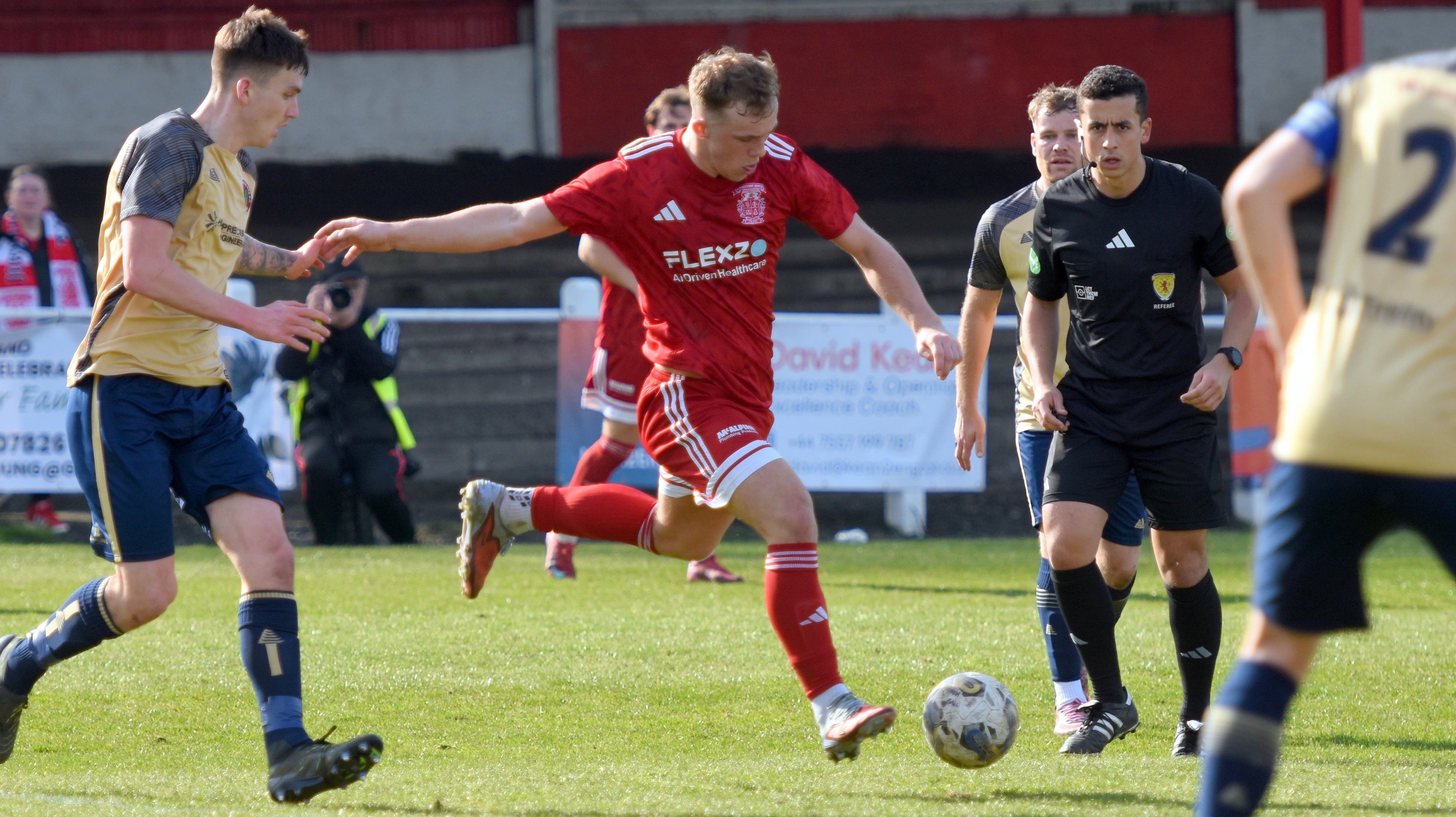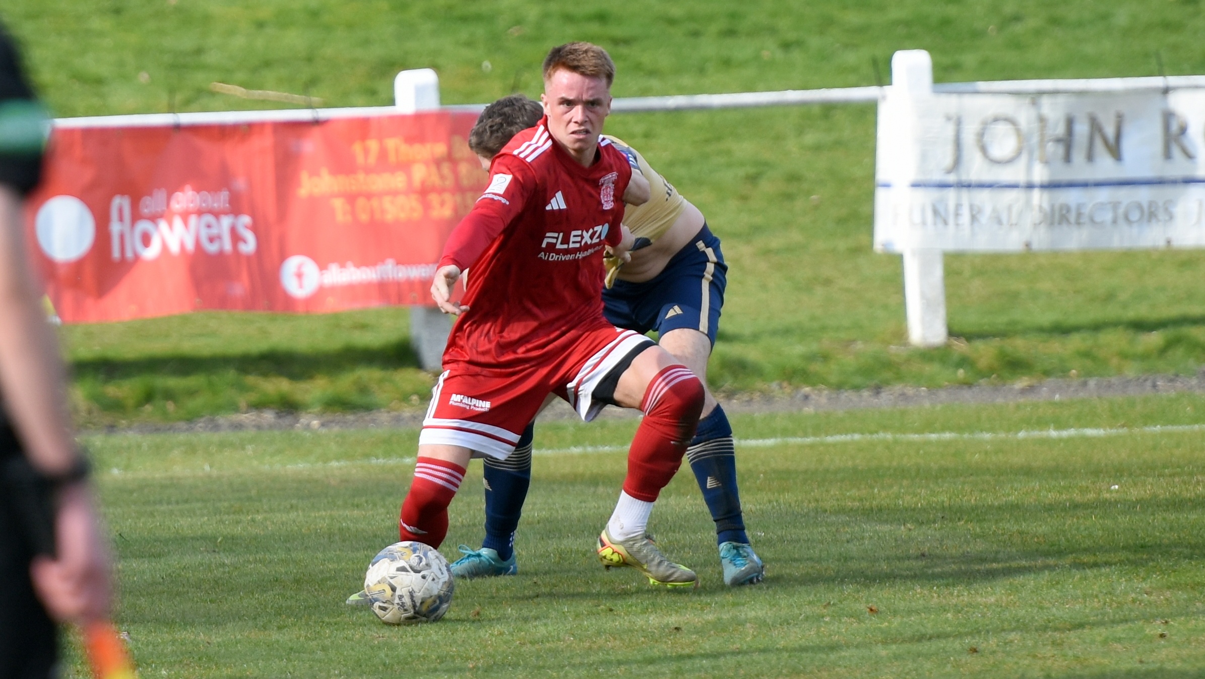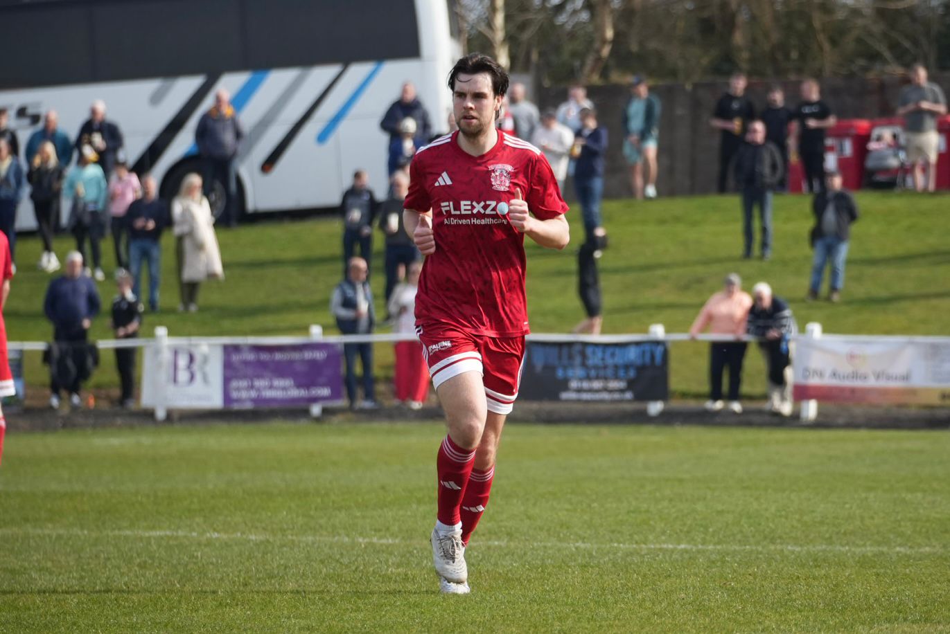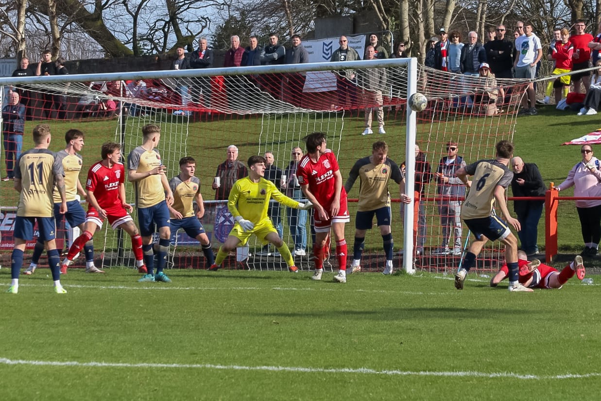 Aidan Gilmartin came very close to equalising for Johnstone Burgh in the 55th minute as the big striker made an opening for himself at the edge of the box, but his powerful left foot shot that looked to be heading for the top left hand corner, was brilliantly tipped over the crossbar by Ross Matthews.