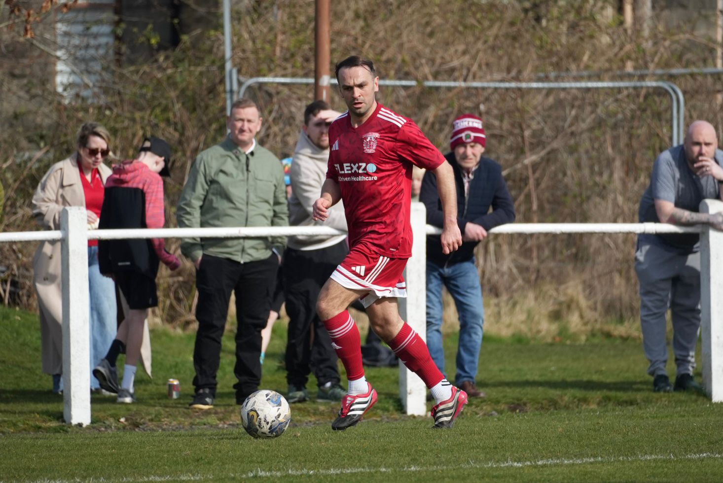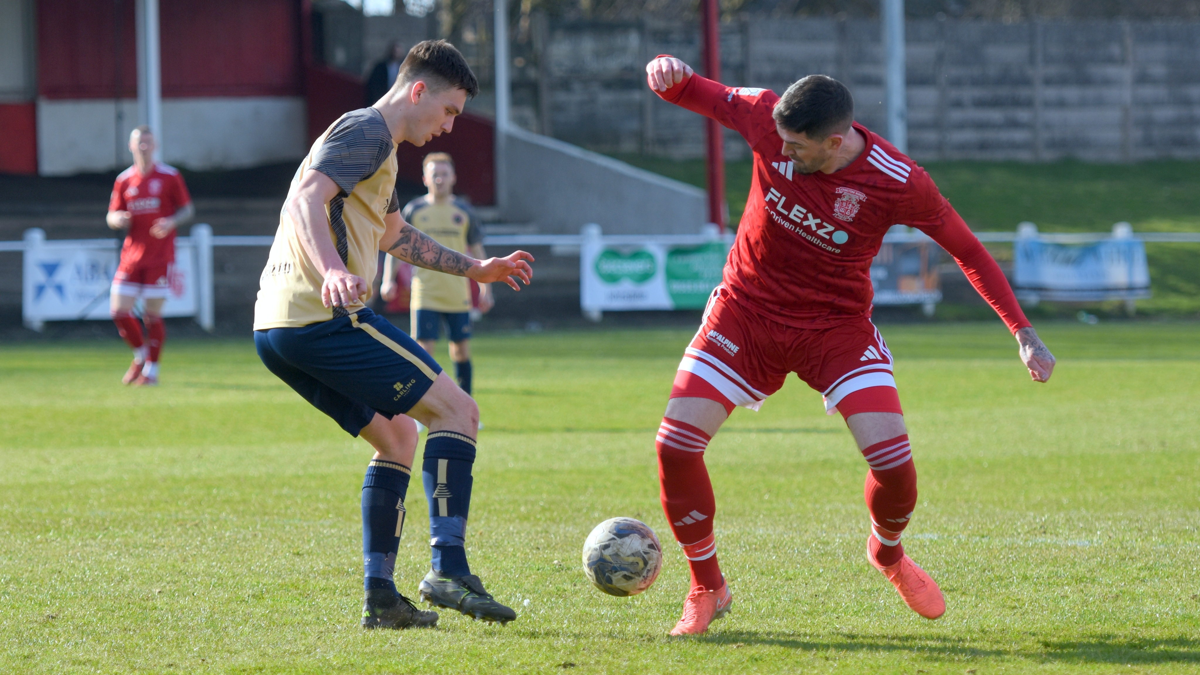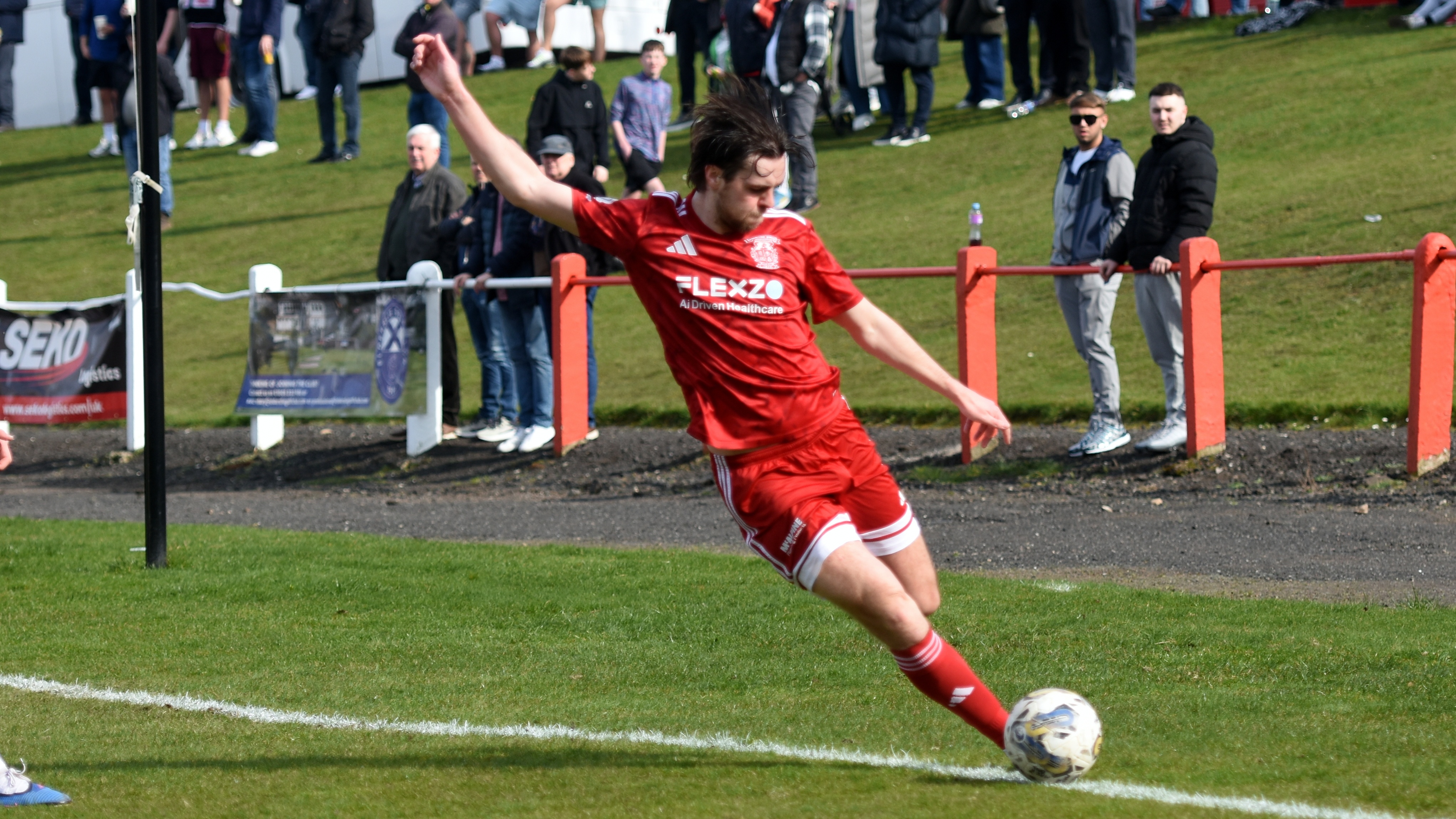 Aidan Gilmartin came very close to equalising for Johnstone Burgh in the 55th minute as the big striker made an opening for himself at the edge of the box, but his powerful left foot shot that looked to be heading for the top left hand corner, was brilliantly tipped over the crossbar by Ross Matthews.