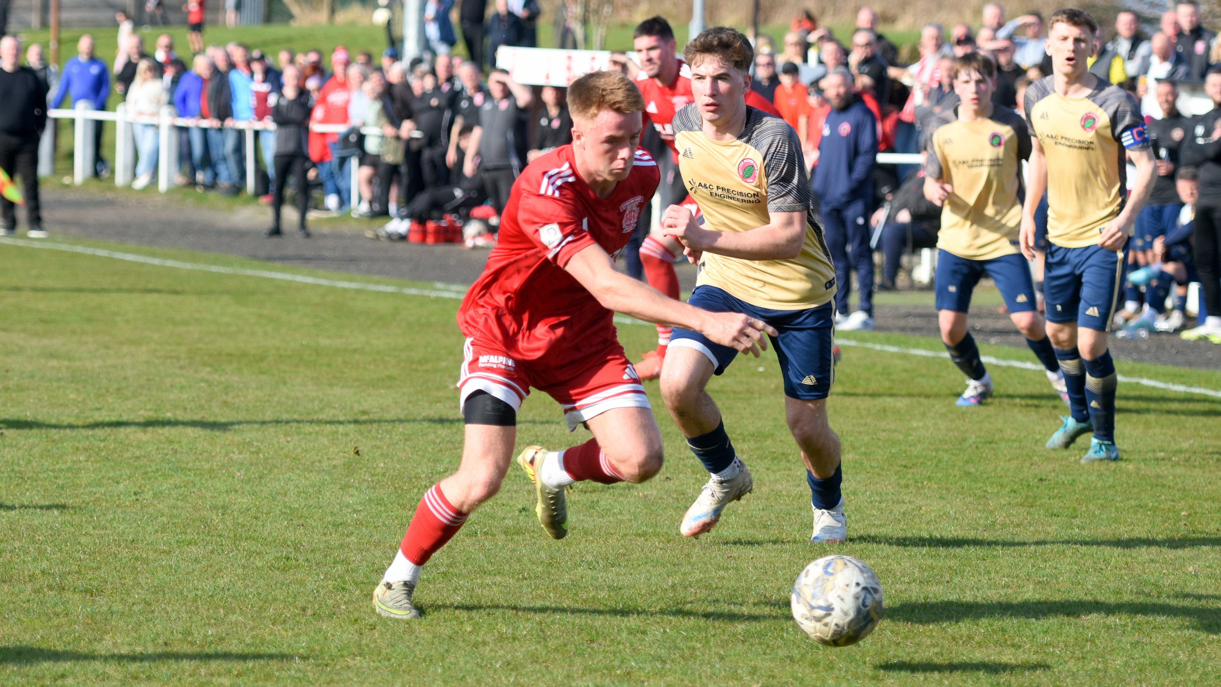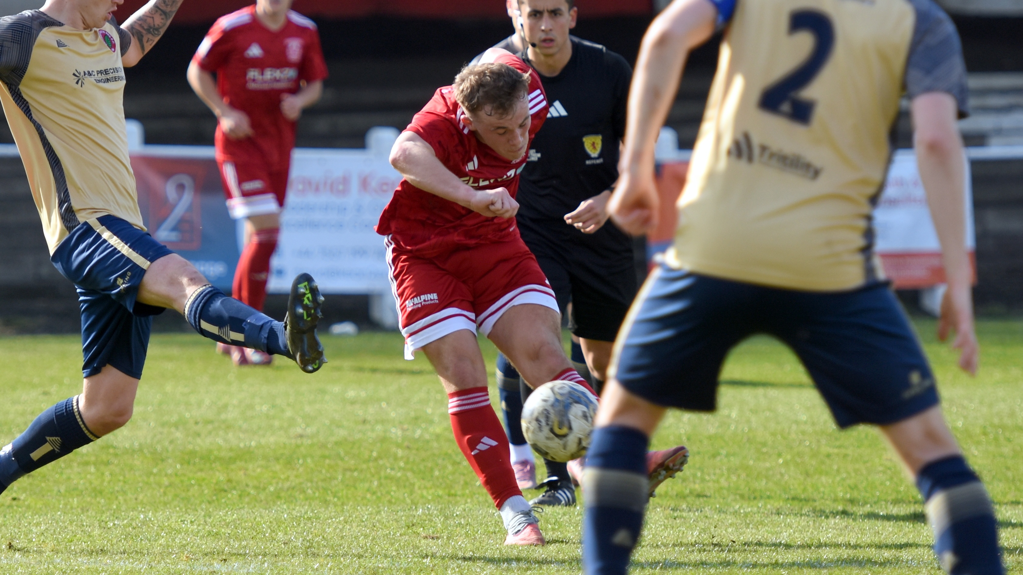 In the 34th minute Aidan Gilmartin had two well stuck shots blocked inside the box in the space of 30 seconds, as the Dundee North End defence held firm.