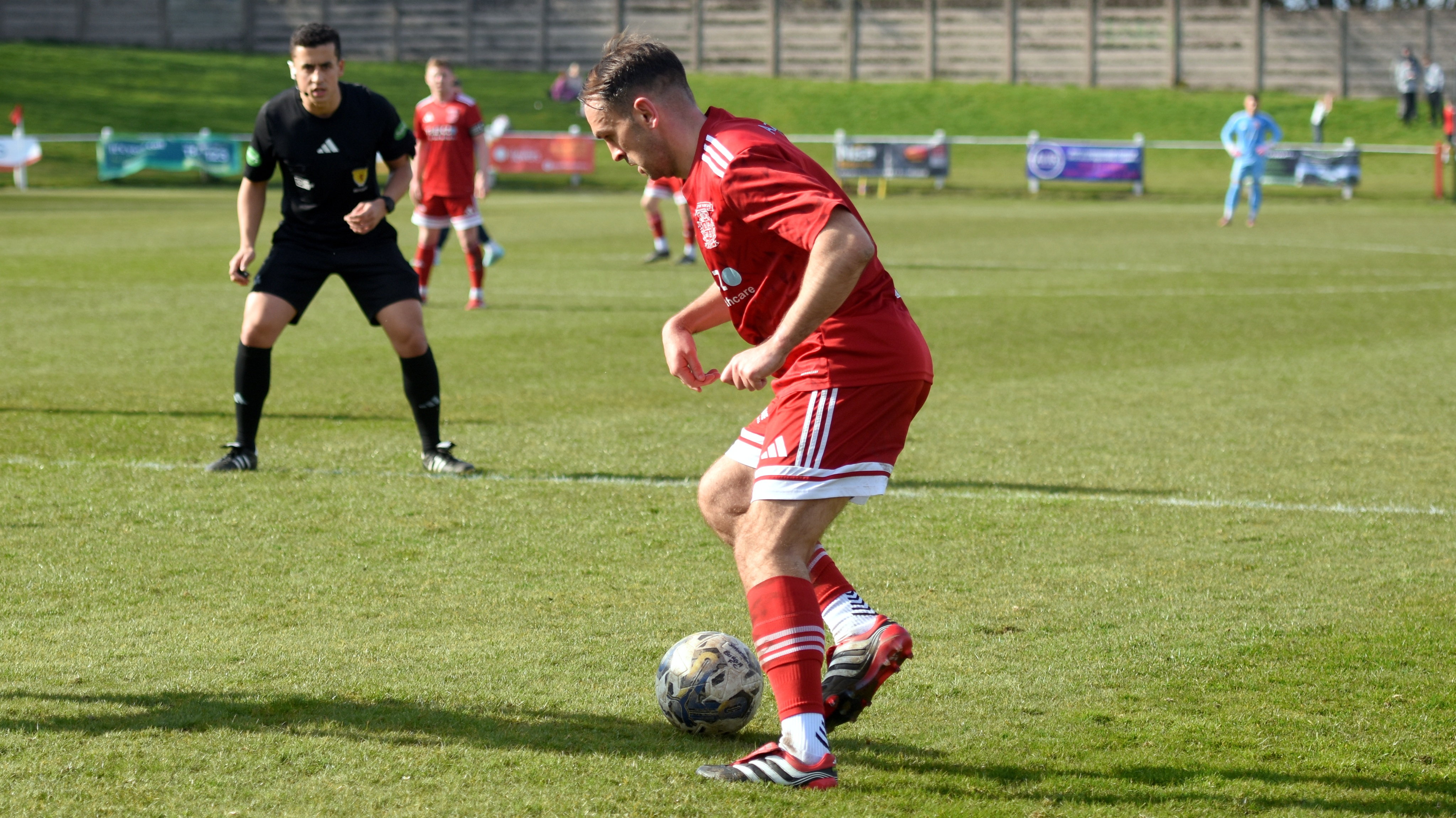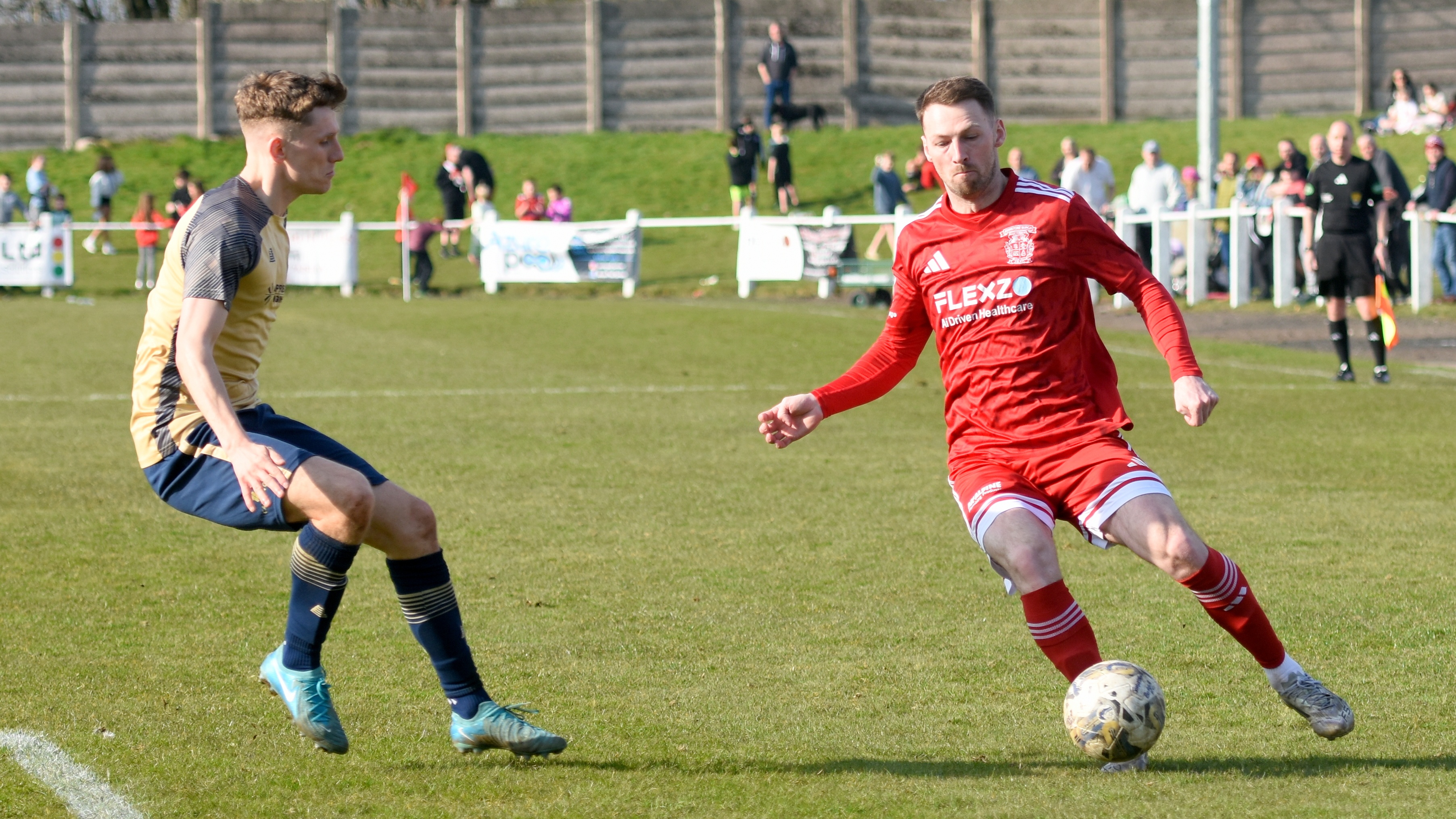 It had been a quiet start to the match for the Burgh. Their first chance came in the 23rd minute, but Lewis King's header at the back post from an Aaron Mason free kick, from around 8 yards, was saved by Dundee North End goalkeeper Ross Matthews.