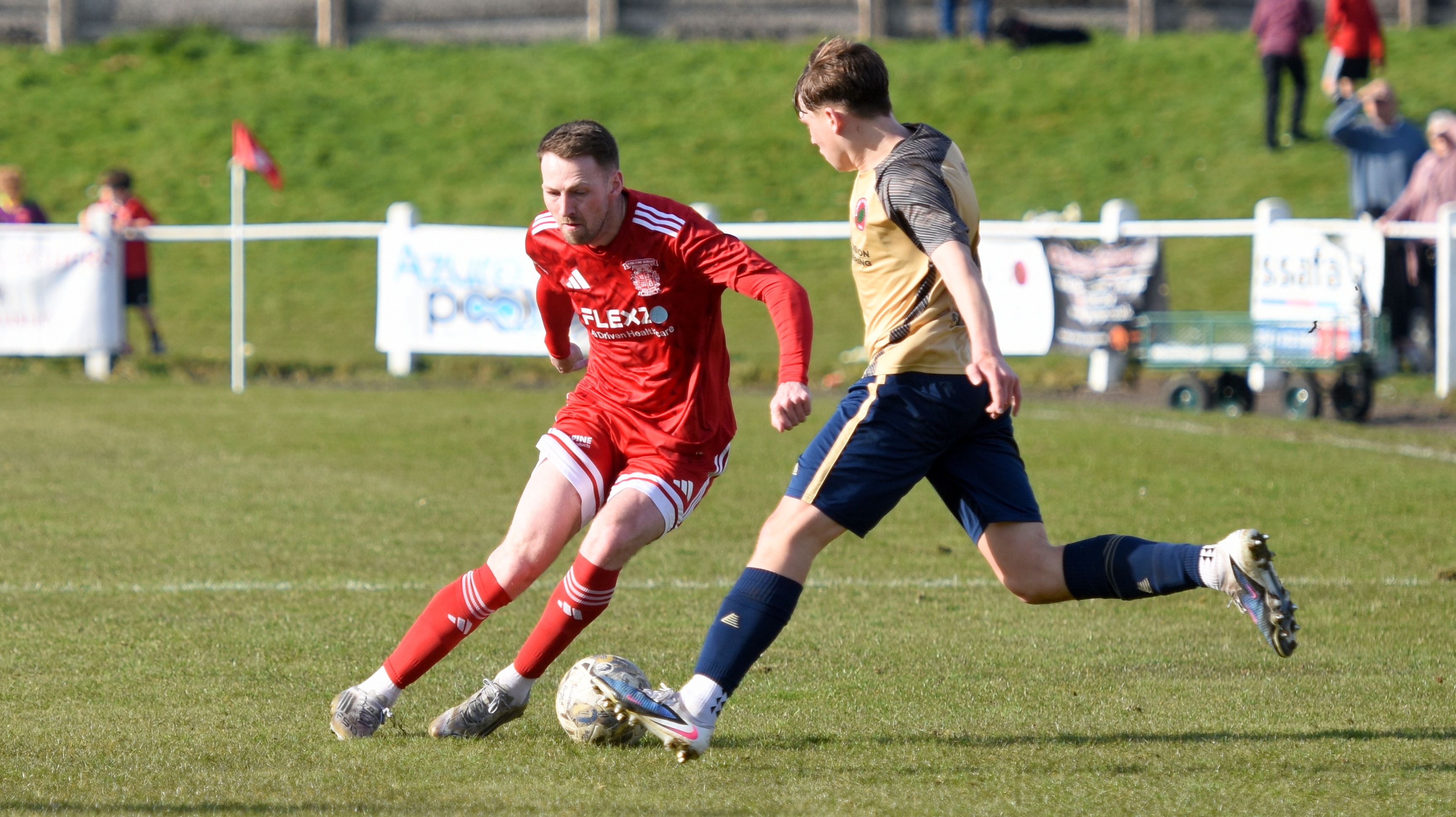 Frankie Devine had the first chance of the match for Dundee North End in the 5th minute, but his right foot shot from 16 yards was dragged wide of the left hand post.