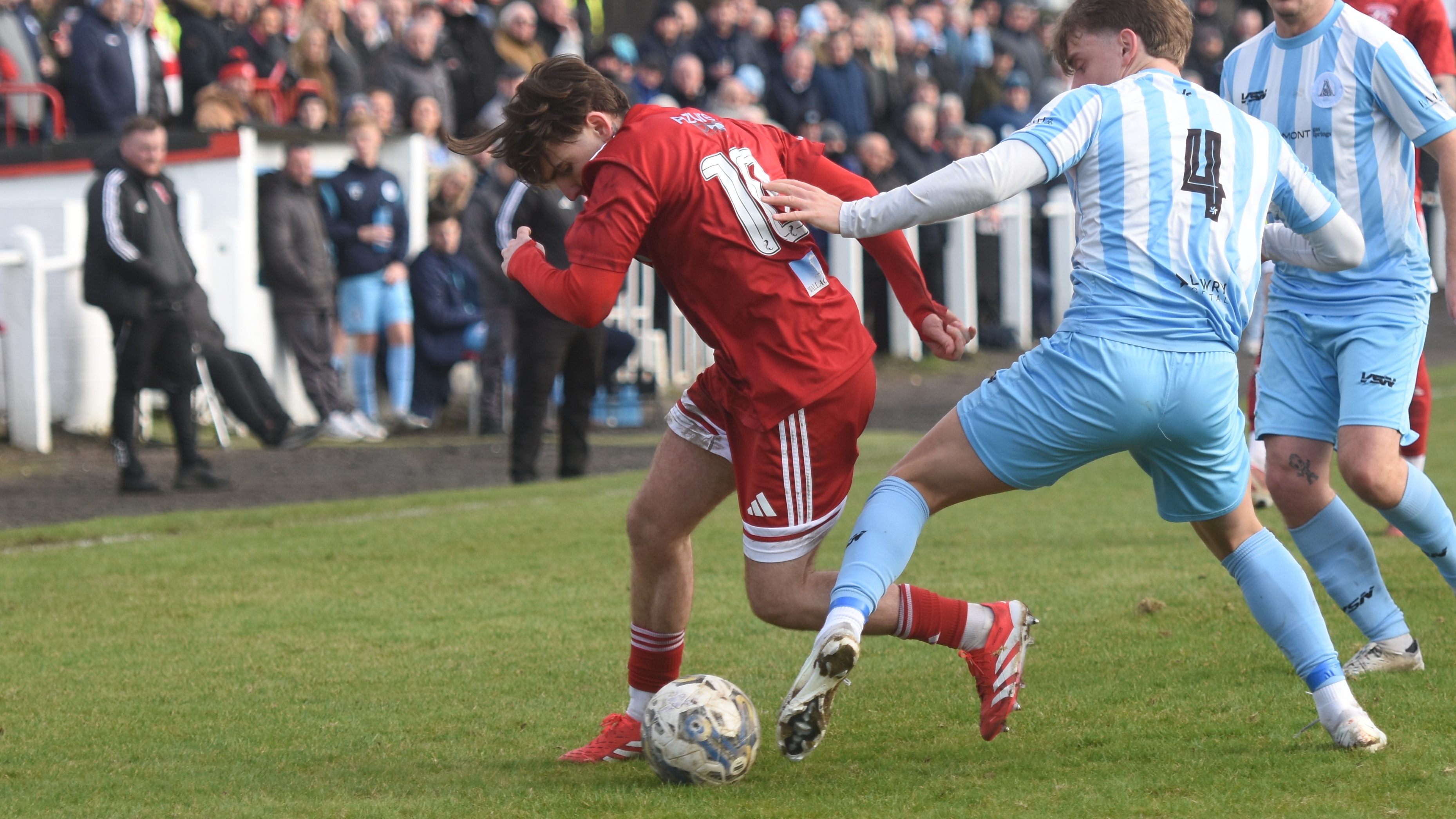 As the match entered the first minute of added time, Johnstone Burgh would score their second goal of the match via Leon Murphy, who fired a fine left foot volley into the left hand corner of the net from the right side of the box, 14 yards from goal.