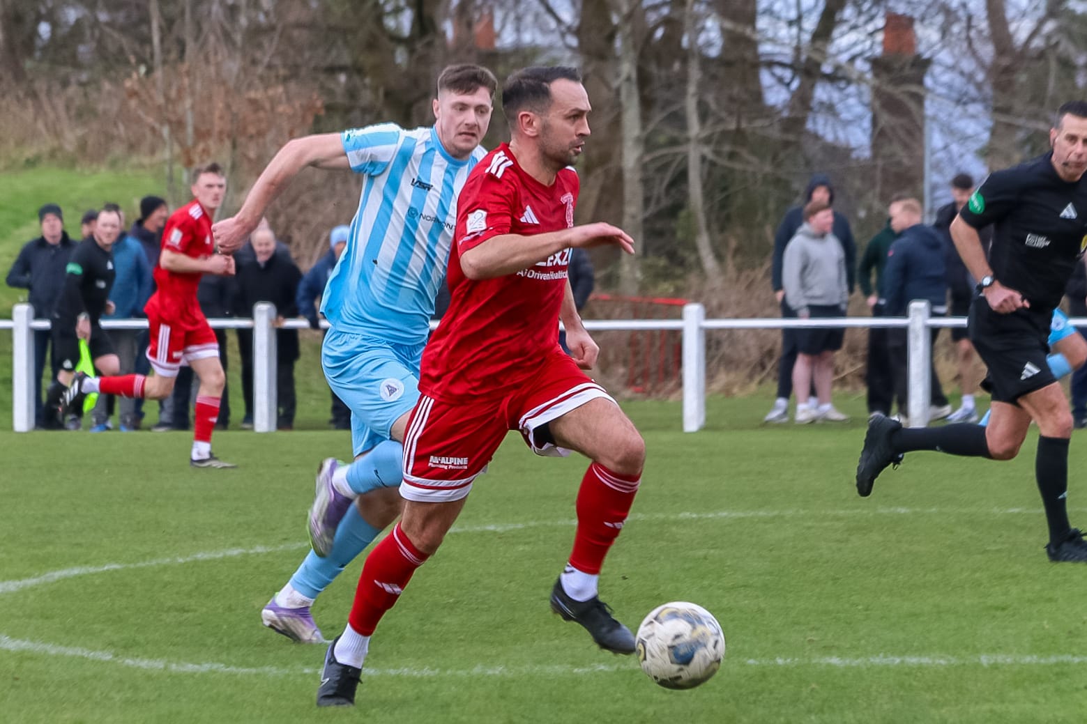 At the half hour mark, Arthurlie would have their first chance of the match through Ewan McPherson. The Arthurlie number 11 found some space at the right hand side of the box, but his effort from 18 yards went high over the crossbar.