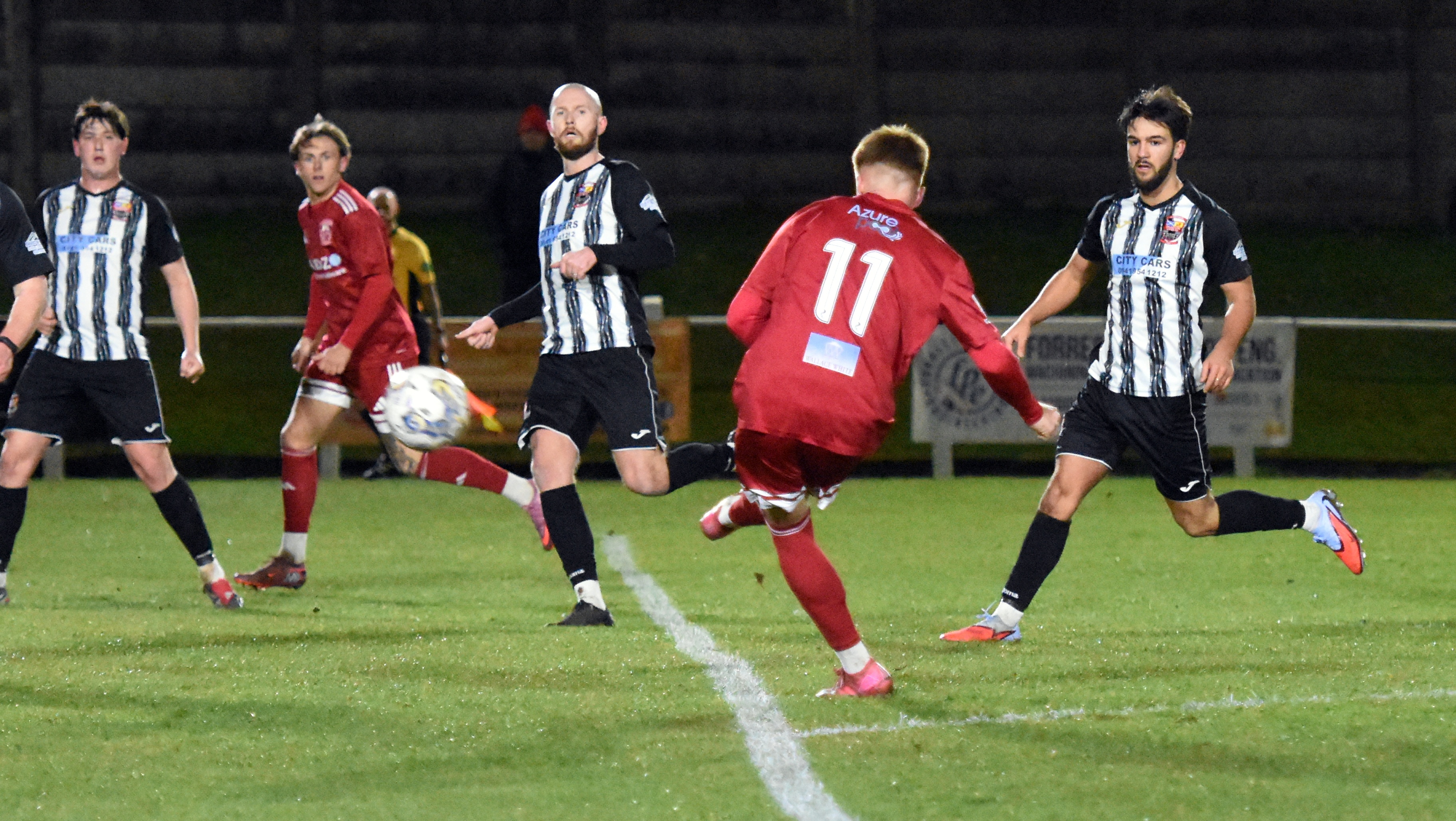 In the 62nd minute, Ian McShane had a chance to score direct from a free kick from around 25 yards, but his well struck right foot shot was saved by Pazikas.