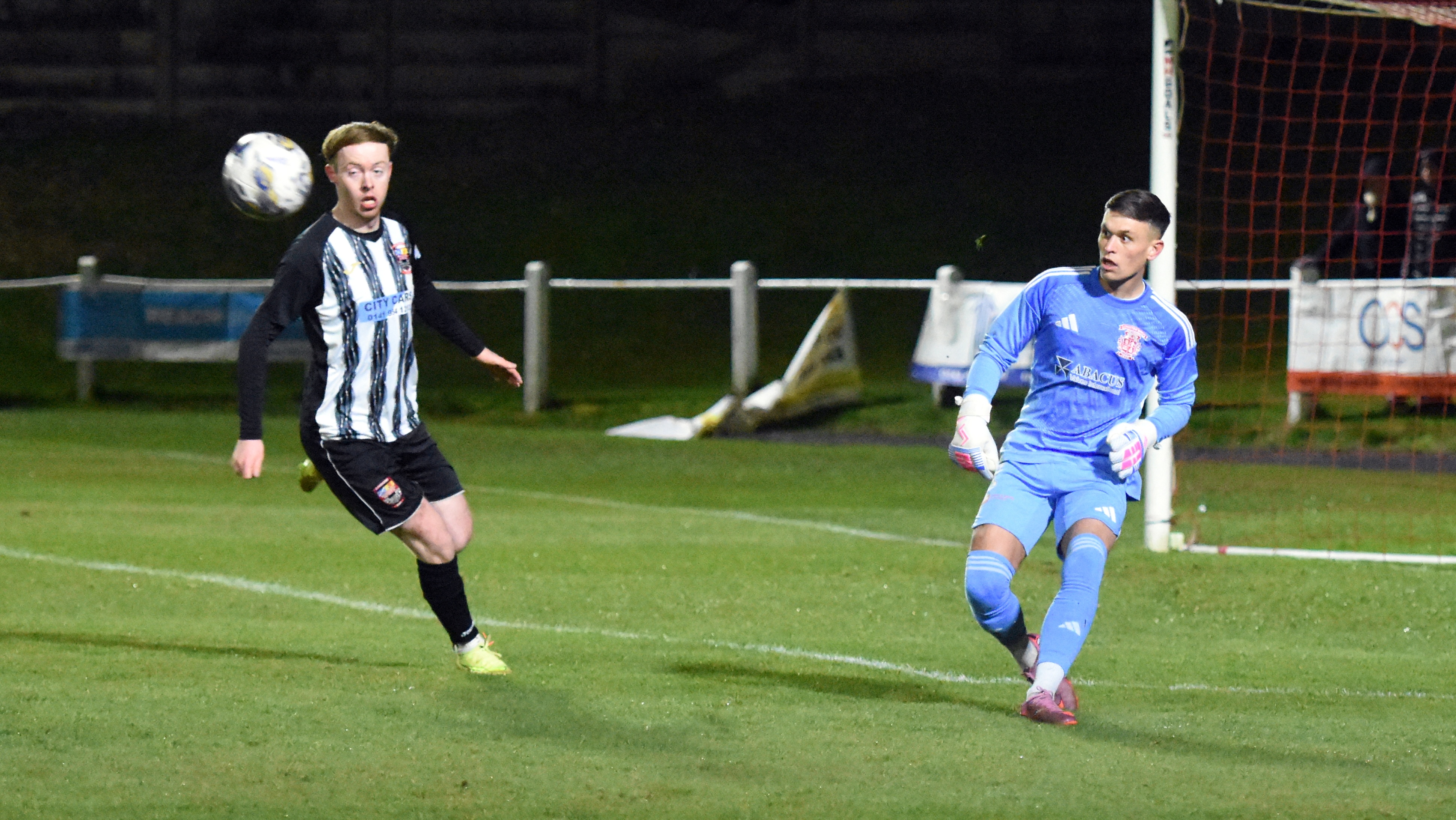 Drumchapel United had made a quiet start to the match, but came close to an equaliser in the 20th minute. Bradley Rodden ran on to a long ball to be through on goal, but his left foot shot was well saved by Luke Scullion. A minute later "The Drum" had another great chance. David Hopkirk ran on to another long ball, to nick the ball ahead of Luke Scullion just outside the box, but captain for the evening, Craig Menzies blocked the striker's goal bound effort.