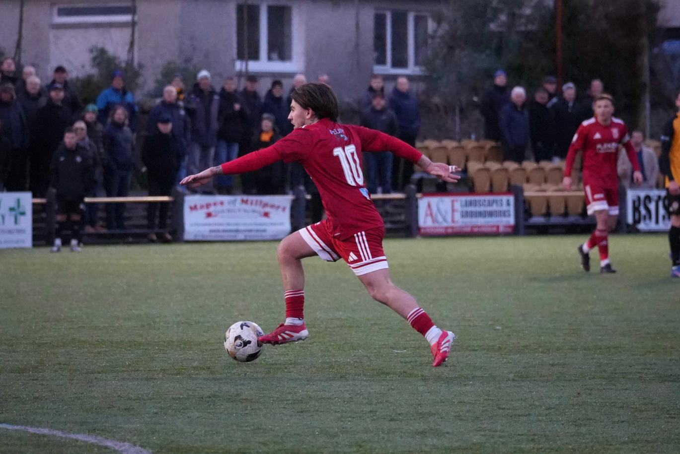 As the match entered injury time, former Largs Thistle Captain Stuart Faulds had a good chance to score the Burgh's 2nd goal of the afternoon, but his well struck shot from 25 yards flew just over the bar.
