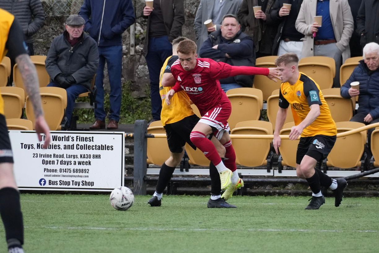 The last 20 minutes of the first half was largely uneventful other than a couple of promising attacks from Largs Thistle, but the Burgh defence held firm to secure a 1-0 lead at the break.