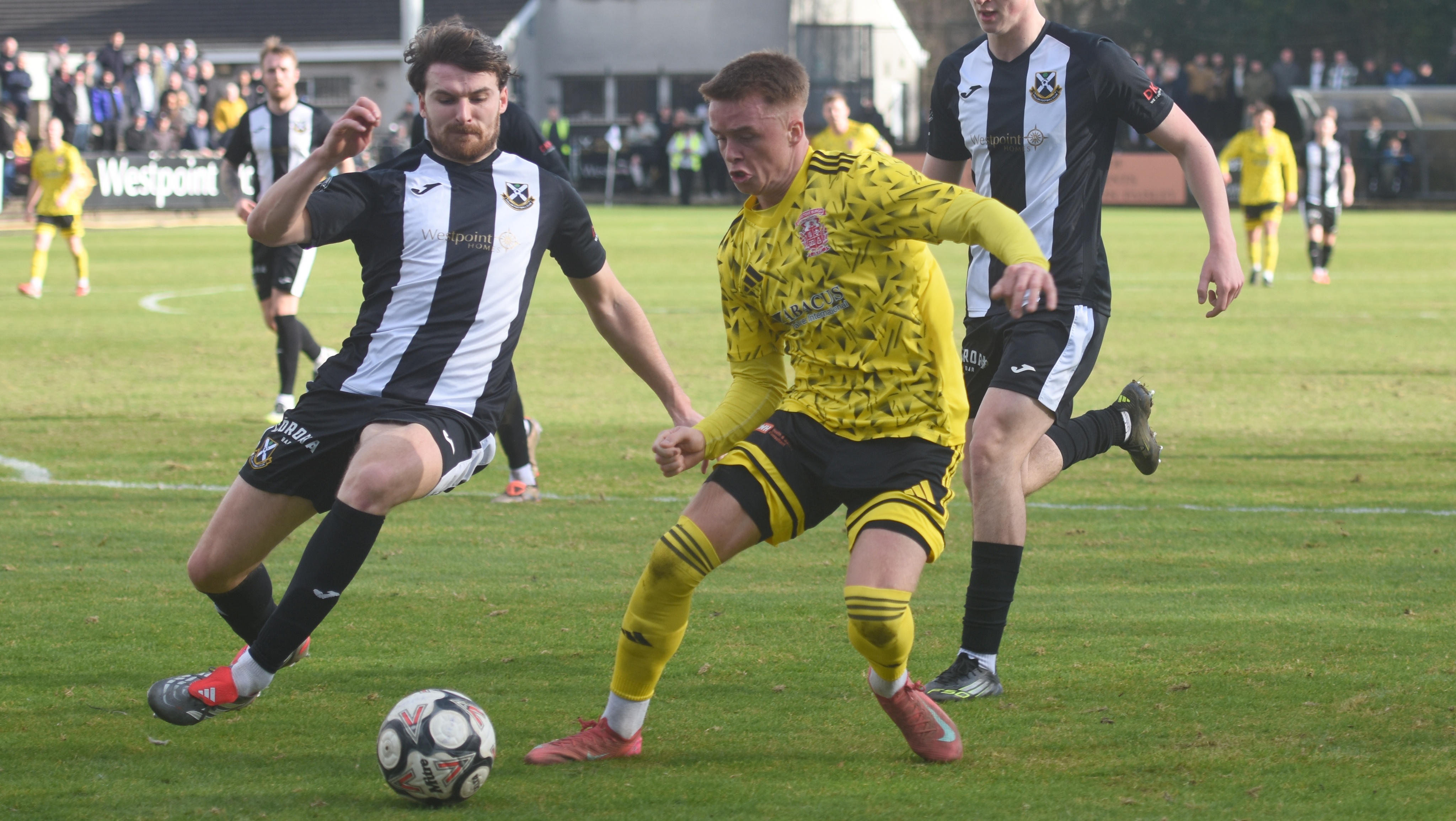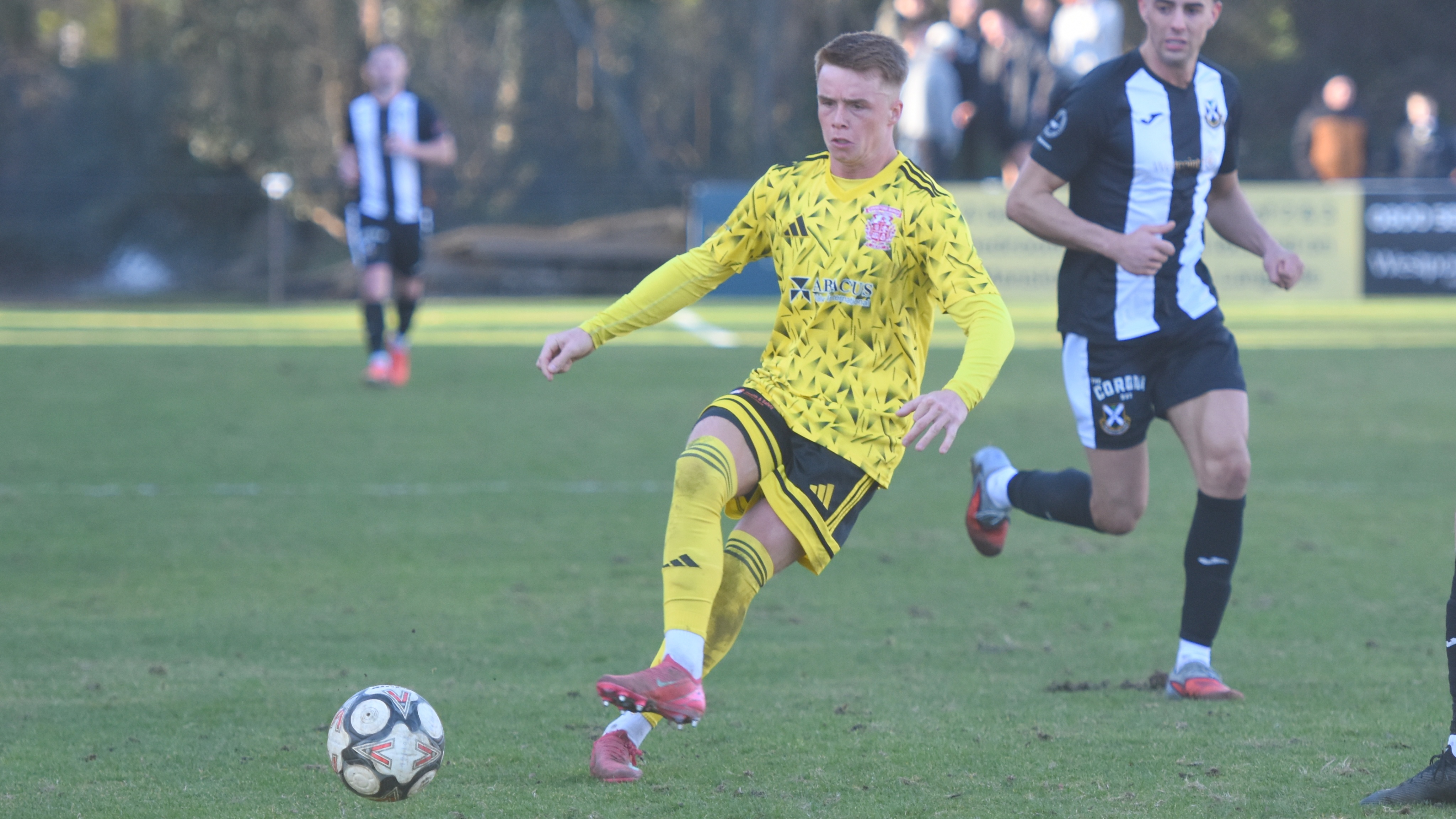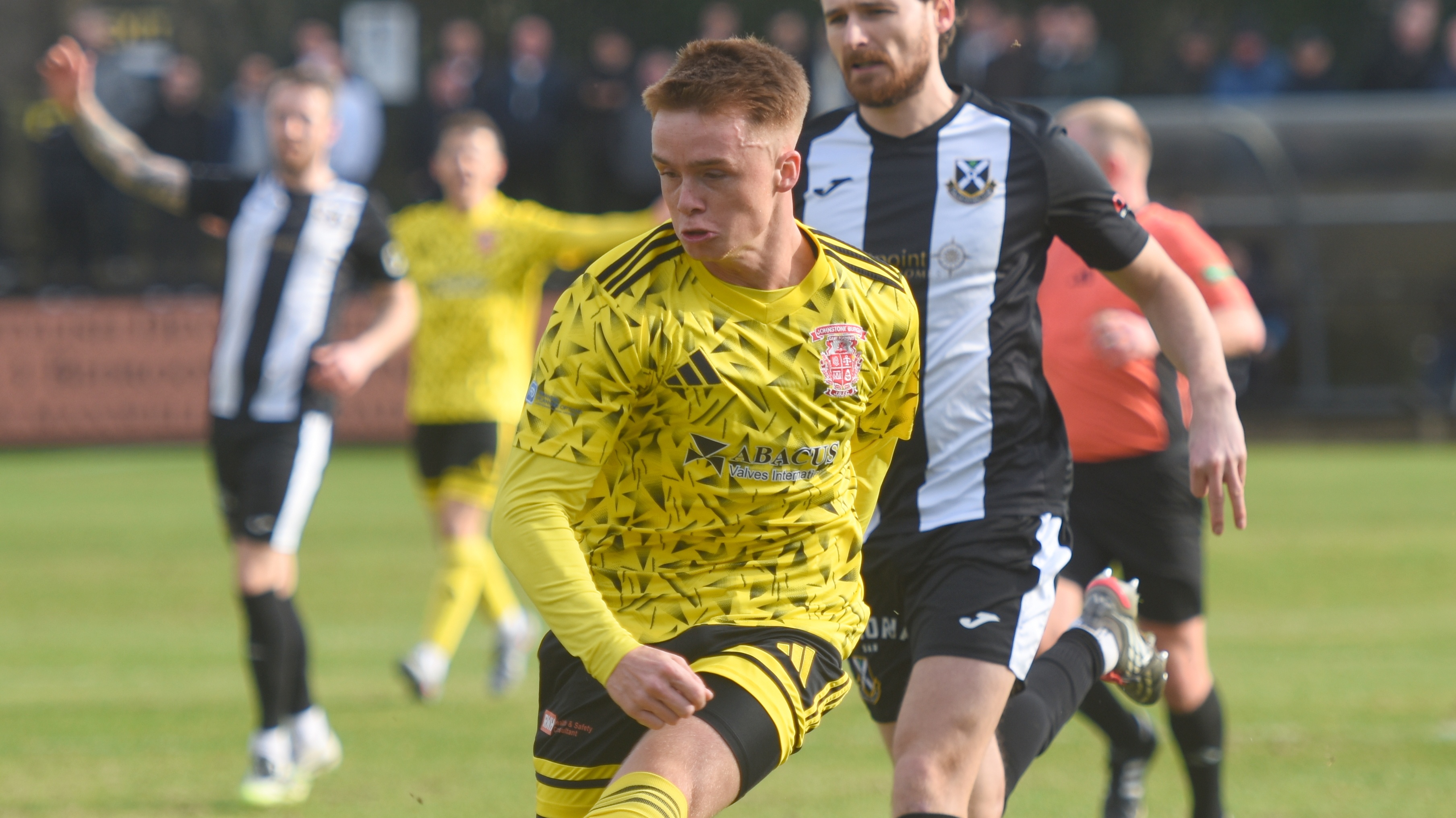 The first chance of the afternoon fell to Burgh's Broque Watson, who nipped in ahead of the Pollok defender to win a bouncing ball around 40 yards from goal, but he dragged his right foot shot wide of the left hand post from around 14 yards after 13 minutes.