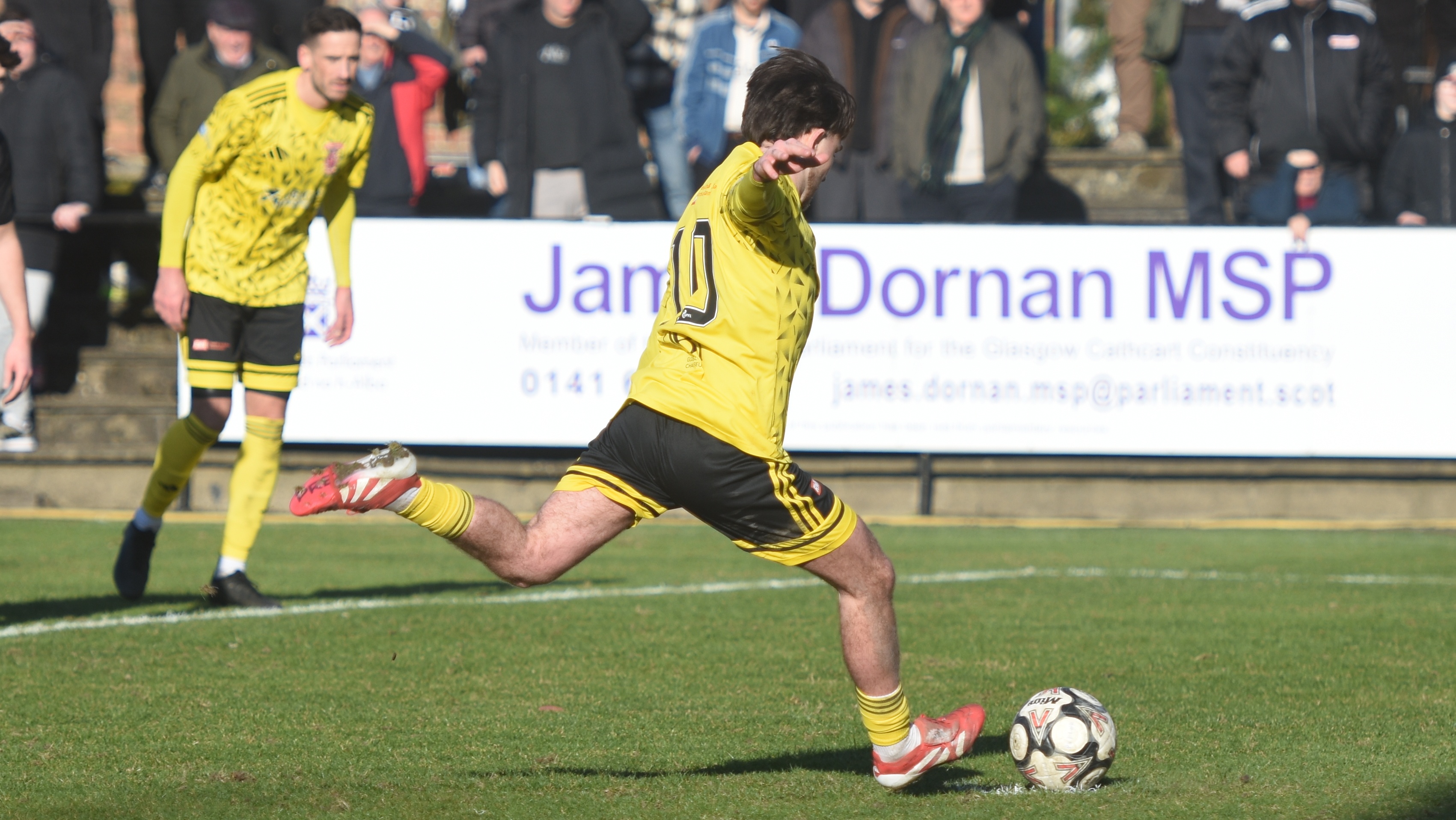 A minute later, Johnstone Burgh had another claim for a penalty, for handball inside the box, but again the referee said no.