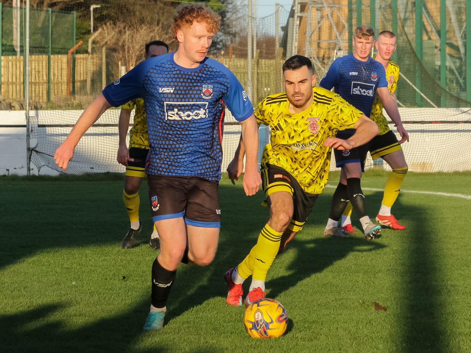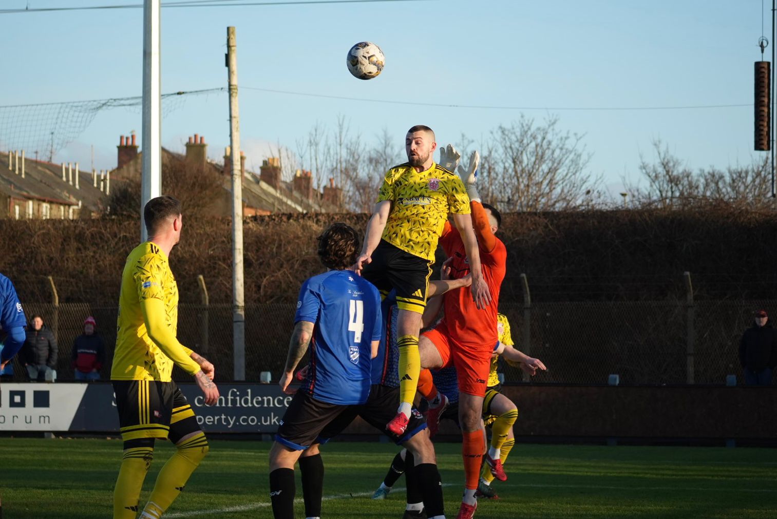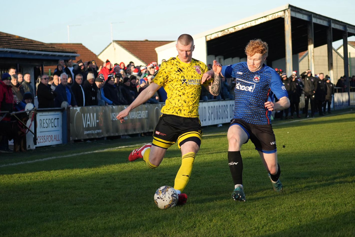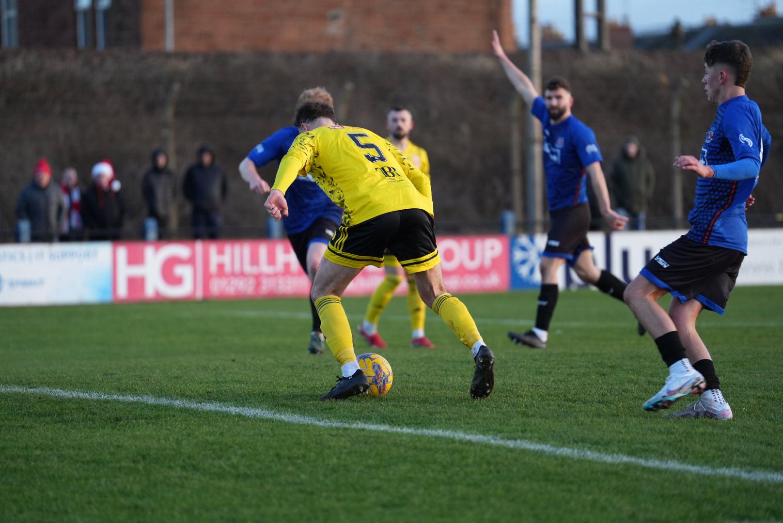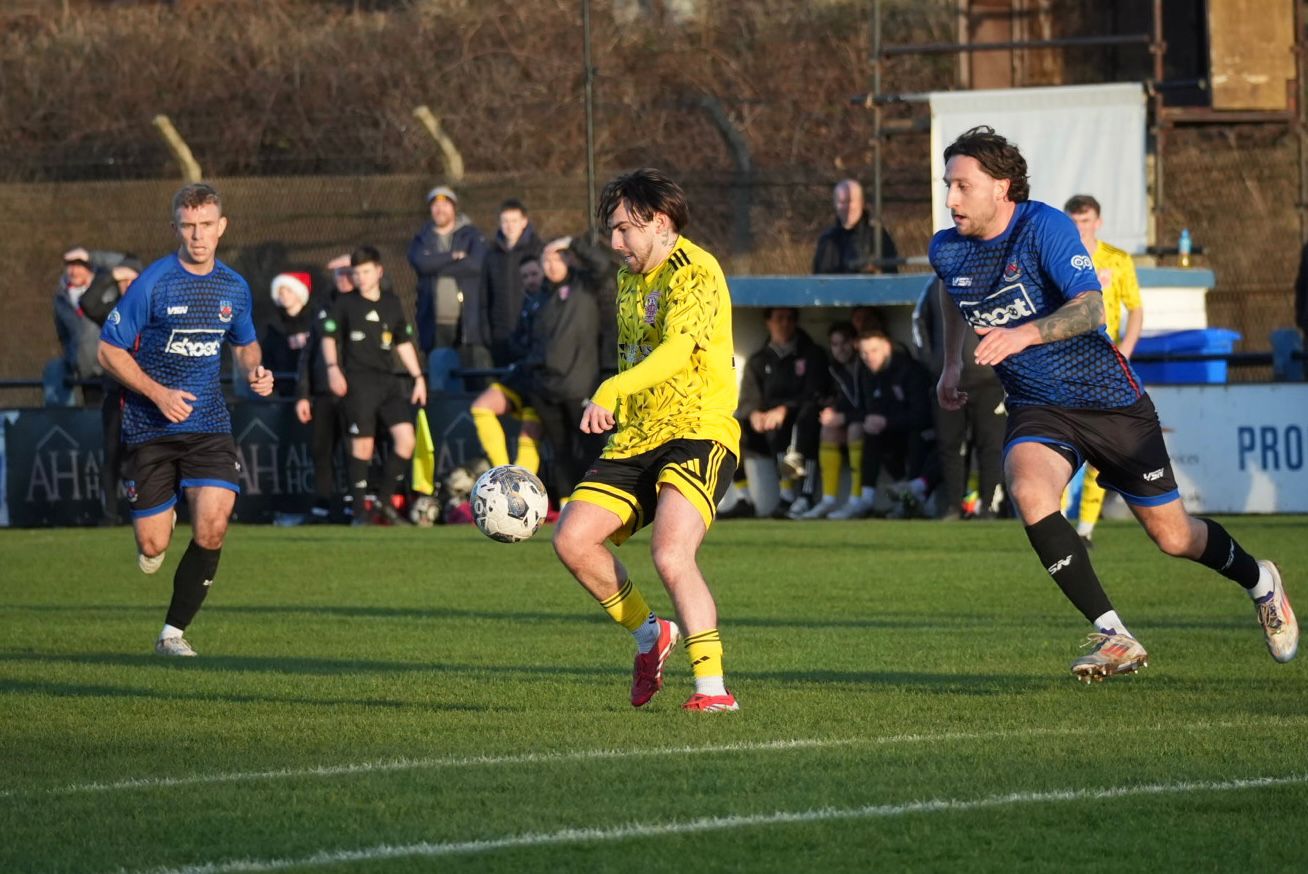 The Burgh had the first chance of the match through Aaron Mason, but the winger fired well wide of the left hand post, 20 yards from goal after four minutes. Mason then had his second chance of the afternoon in the ninth minute, but his powerful shot from 14 yards flew just over the bar. The Burgh number 11 will feel he should have scored.