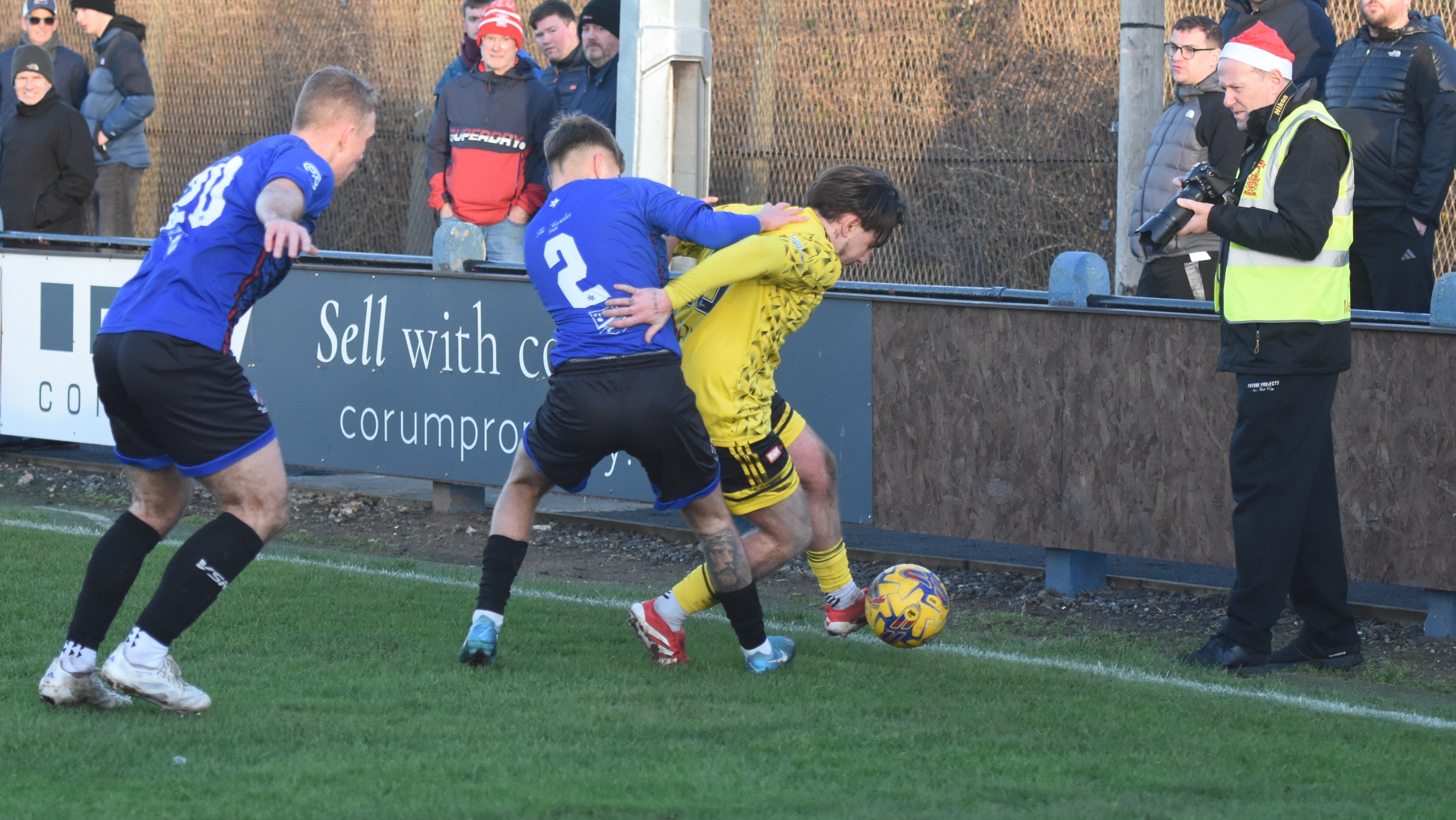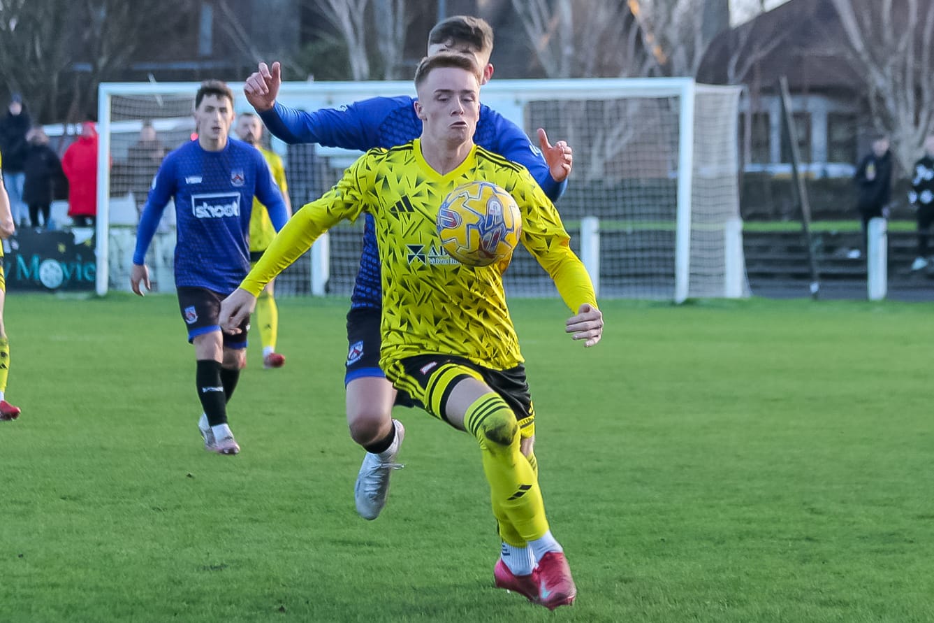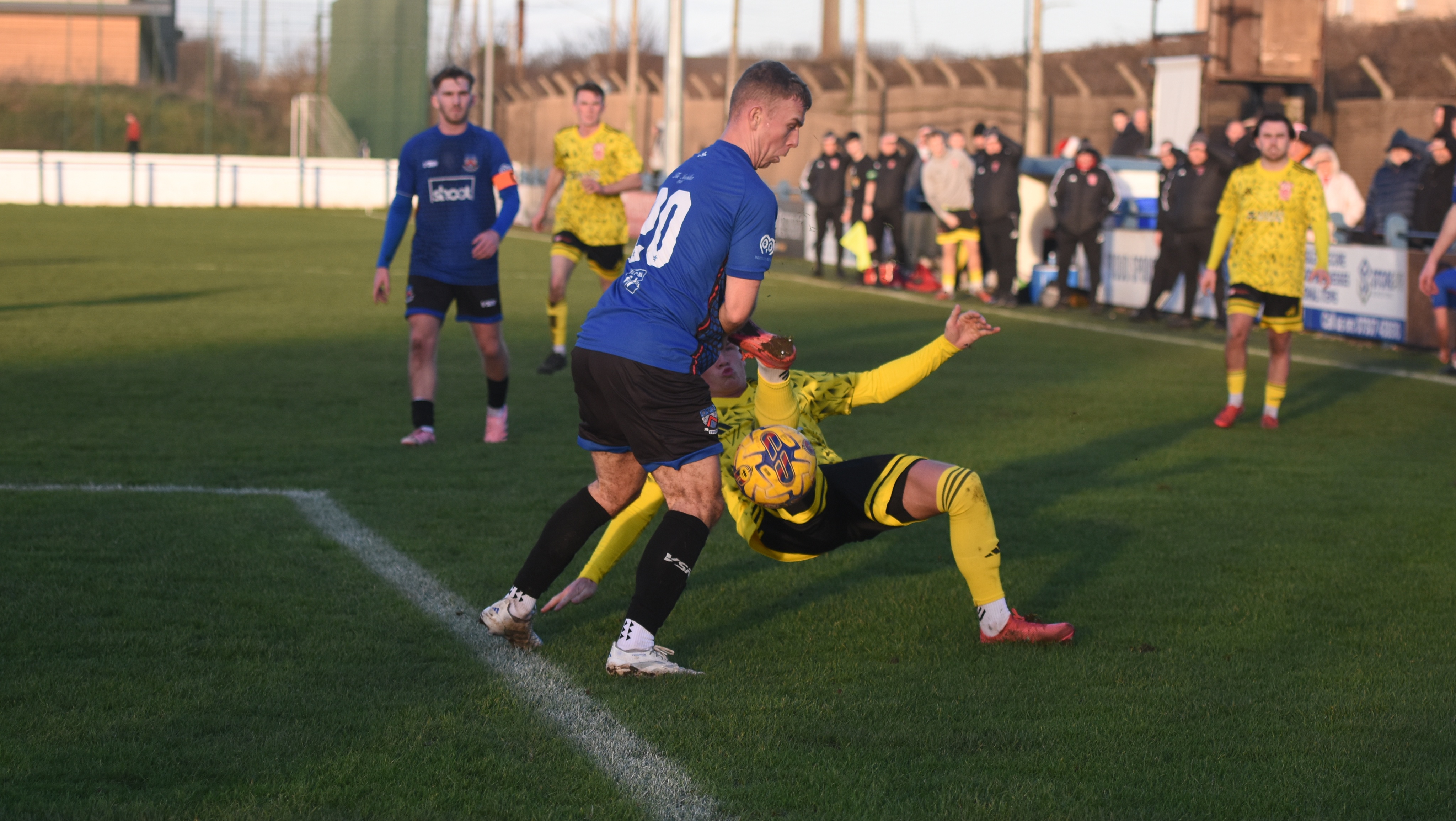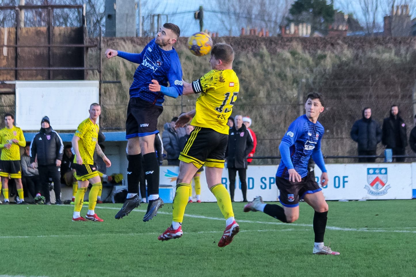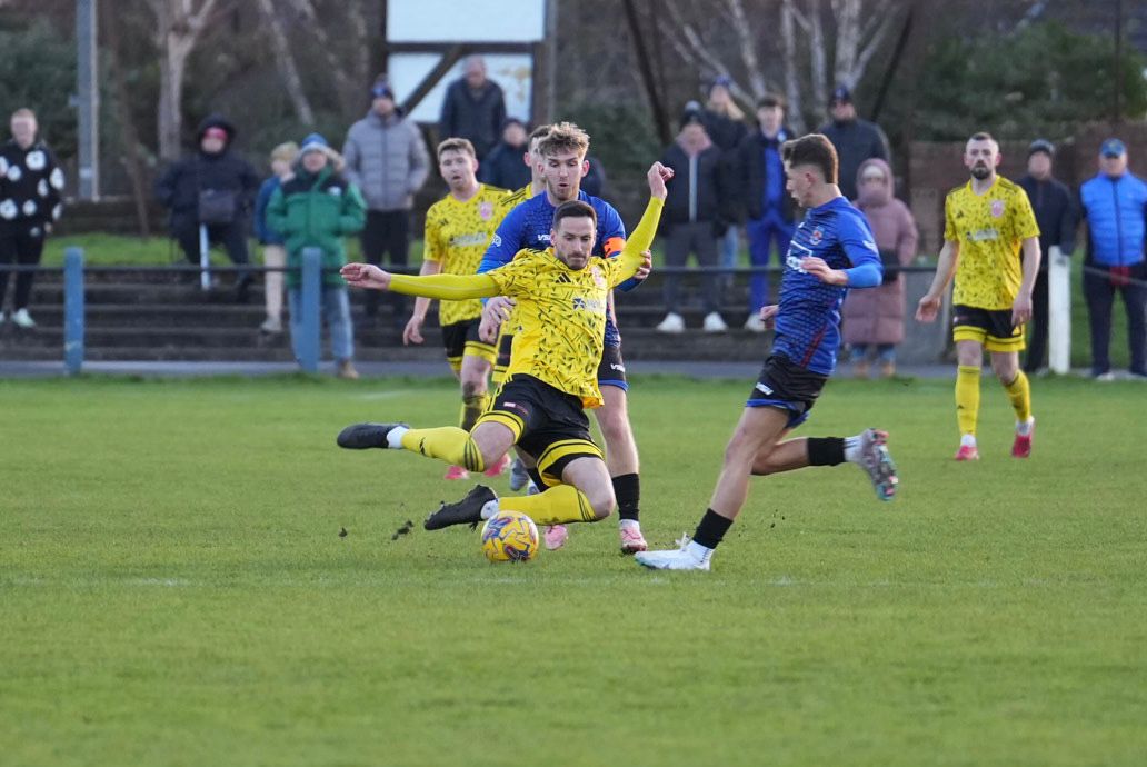 The Burgh had the first chance of the match through Aaron Mason, but the winger fired well wide of the left hand post, 20 yards from goal after four minutes. Mason then had his second chance of the afternoon in the ninth minute, but his powerful shot from 14 yards flew just over the bar. The Burgh number 11 will feel he should have scored.