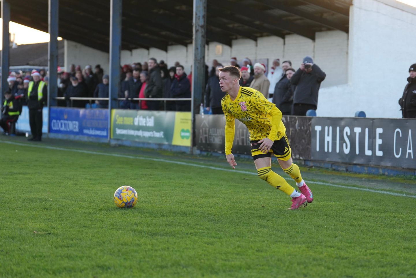 In what was a fairly low key first half with Troon not troubling the Burgh defence, Aaron Mason had the final chance of note for the Johnstone side but his 25 yard shot flew high and wide of the right hand post in the 40th minute. Both teams would go in level at the break.